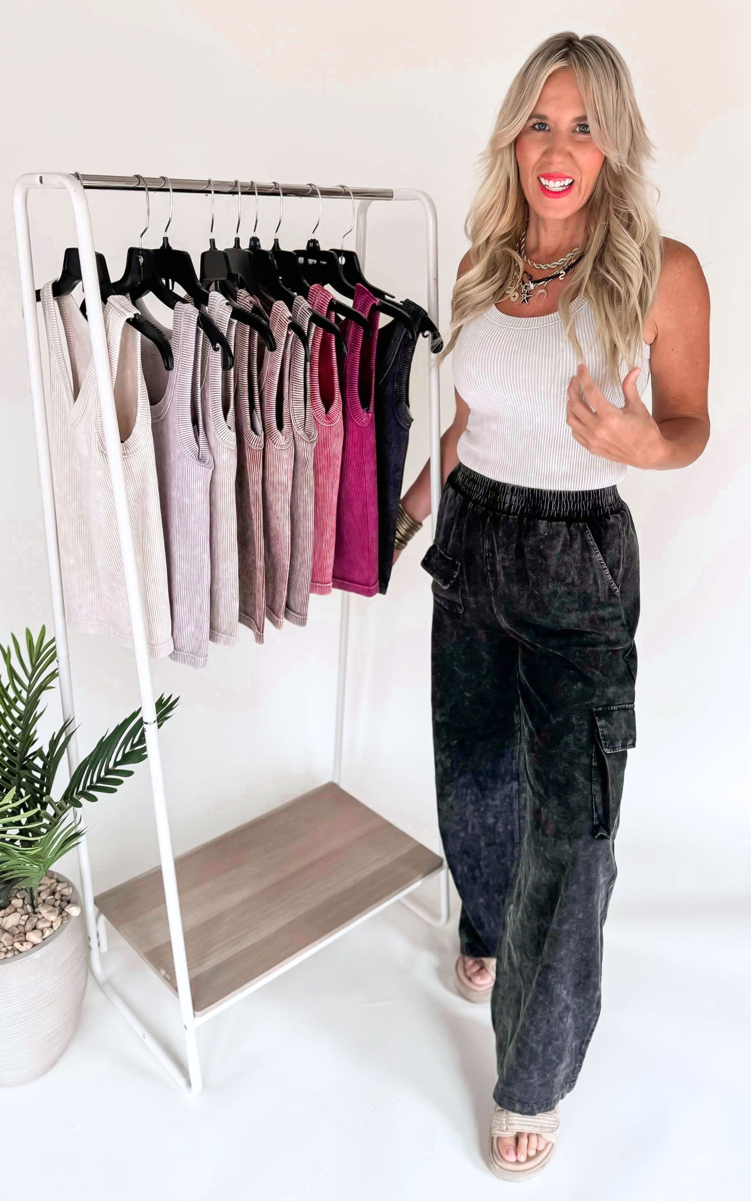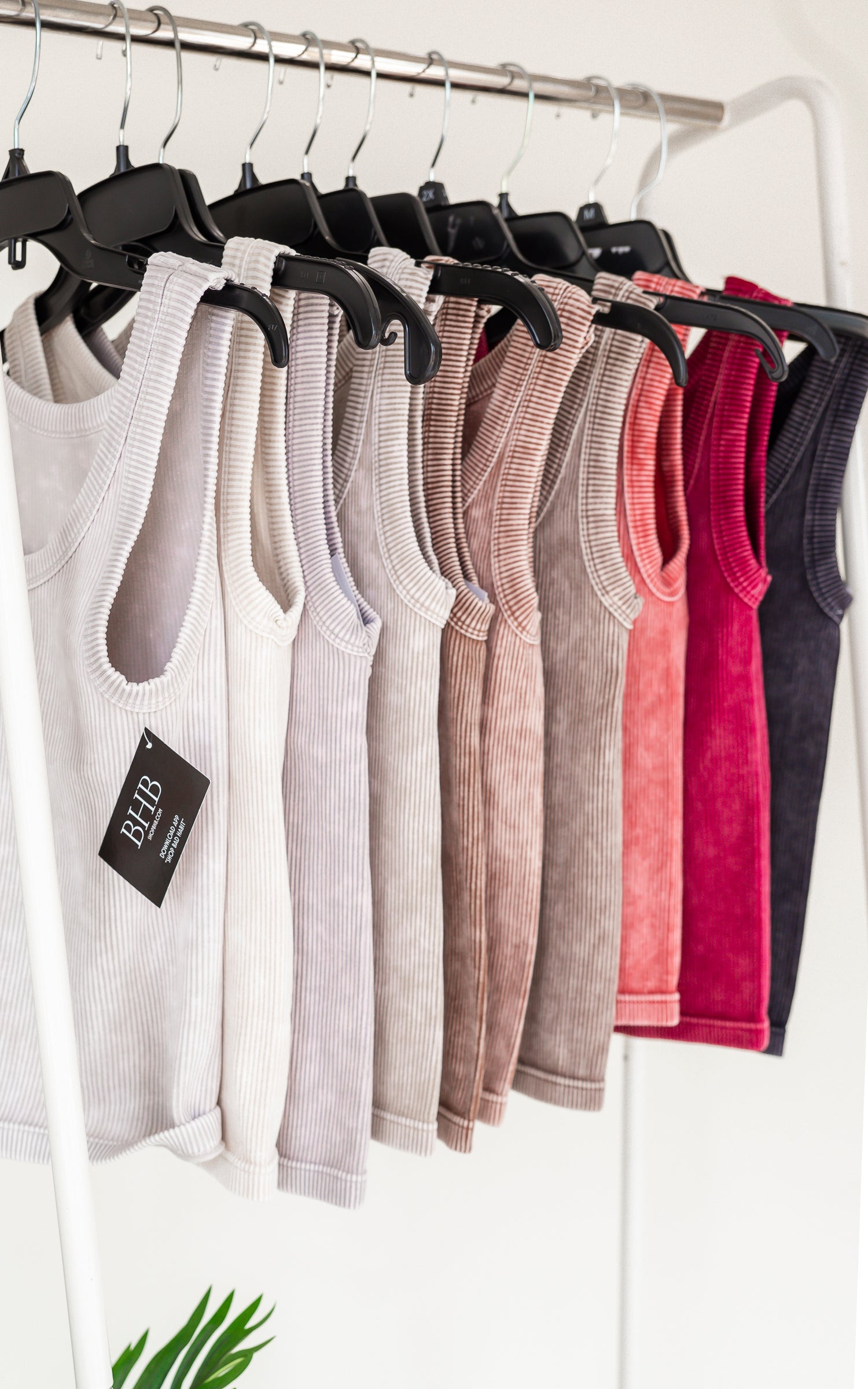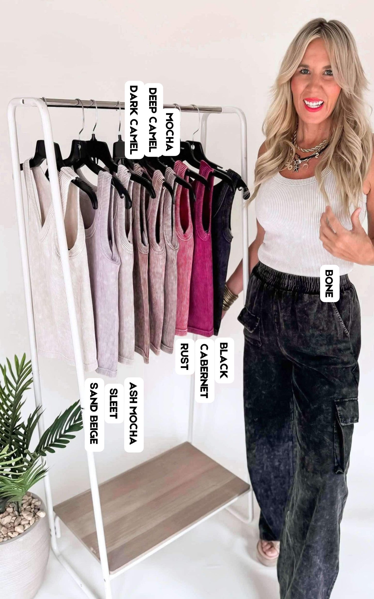 2 Way Neckline Washed Ribbed Seamless Tank Top