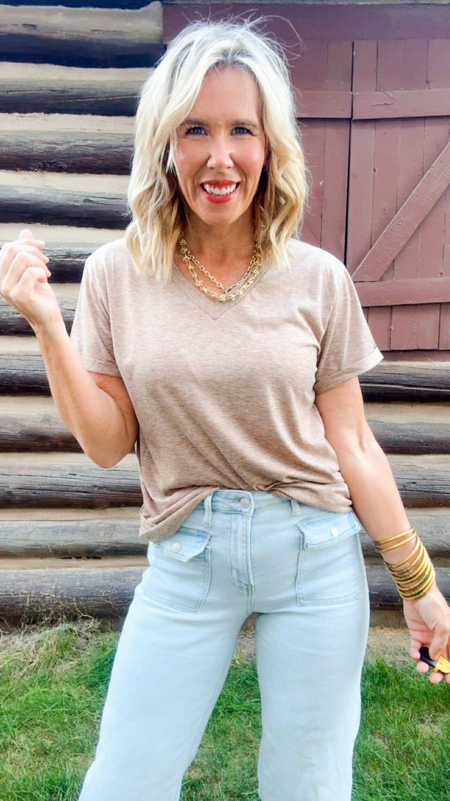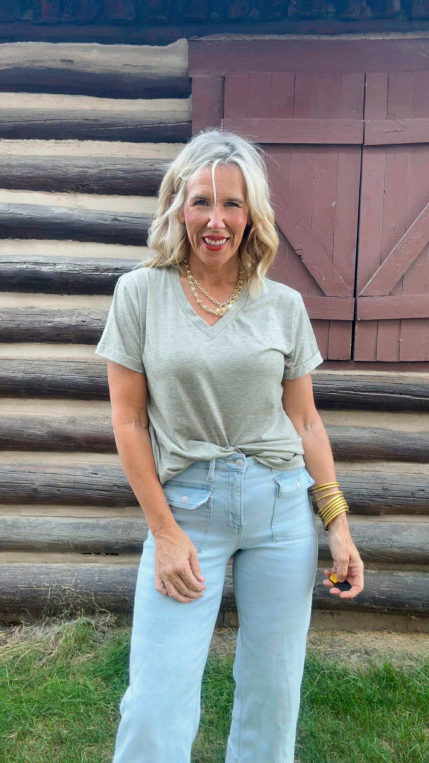 Simple, timeless, and always in style — this is the tee you’ll reach for on repeat. Designed by Sara, it features a flattering v-neckline, soft breathable fabric, and the perfect not-too-tight, not-too-loose fit. Dress it up with a blazer, keep it casual with joggers, or layer it under your favorite shacket. It’s the ultimate “goes-with-everything” piece every closet needs.