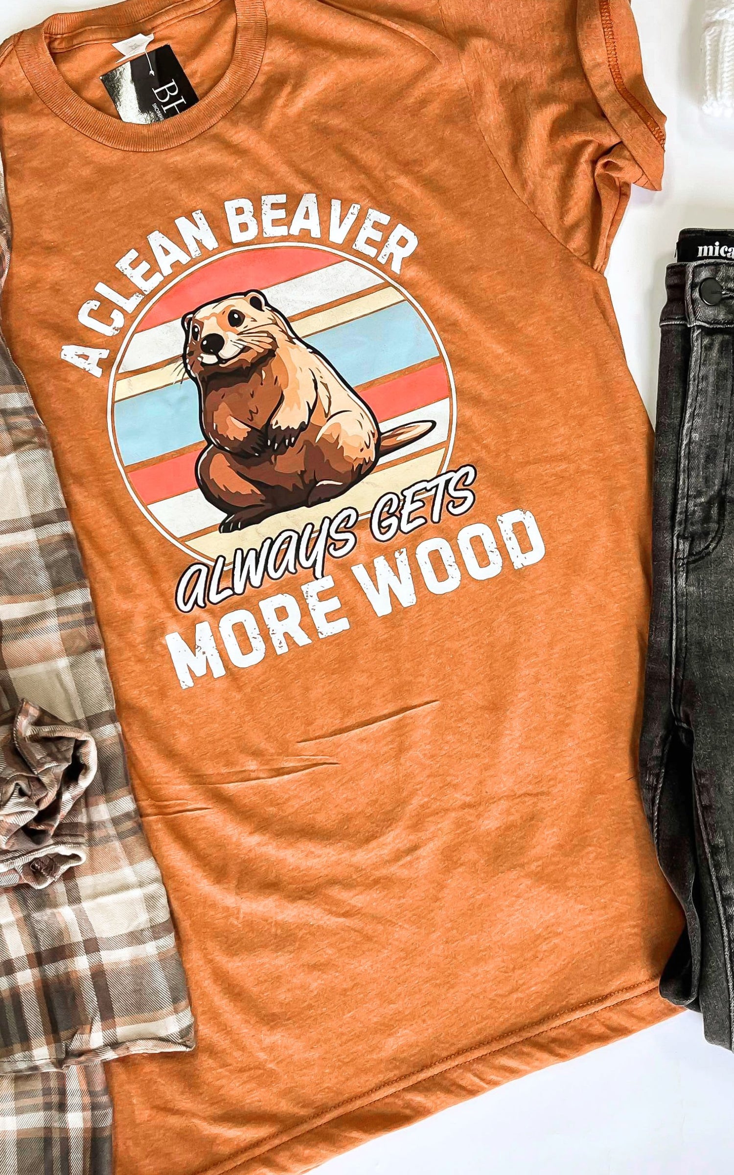 Get a kick out of this A Clean Beaver T-shirt with a pun graphic! Stay fresh and stylish with its quirky design and playful tone. Perfect for those who love a good laugh and don't take themselves too seriously. (Note: Puns not guaranteed to elicit groans or laughs.)