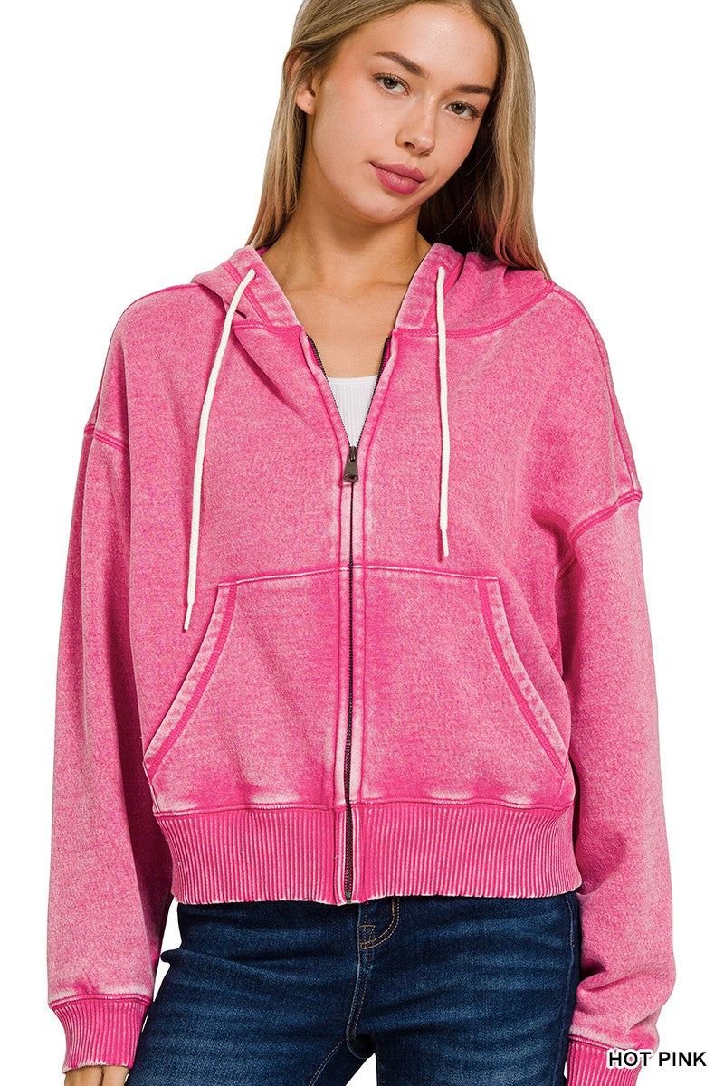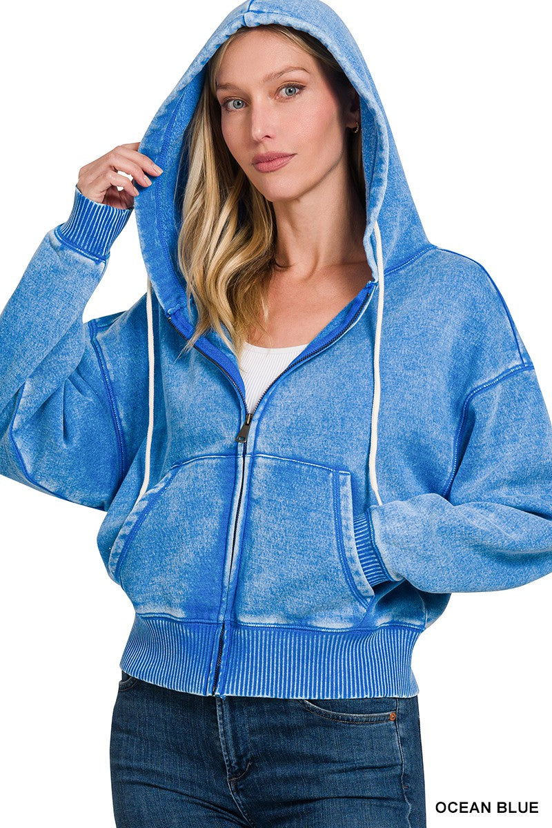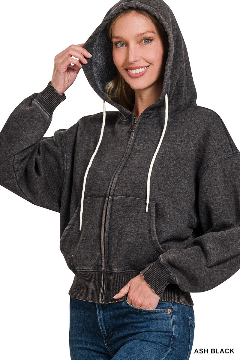 Acid Wash Fleece Hoodie - Final Sale