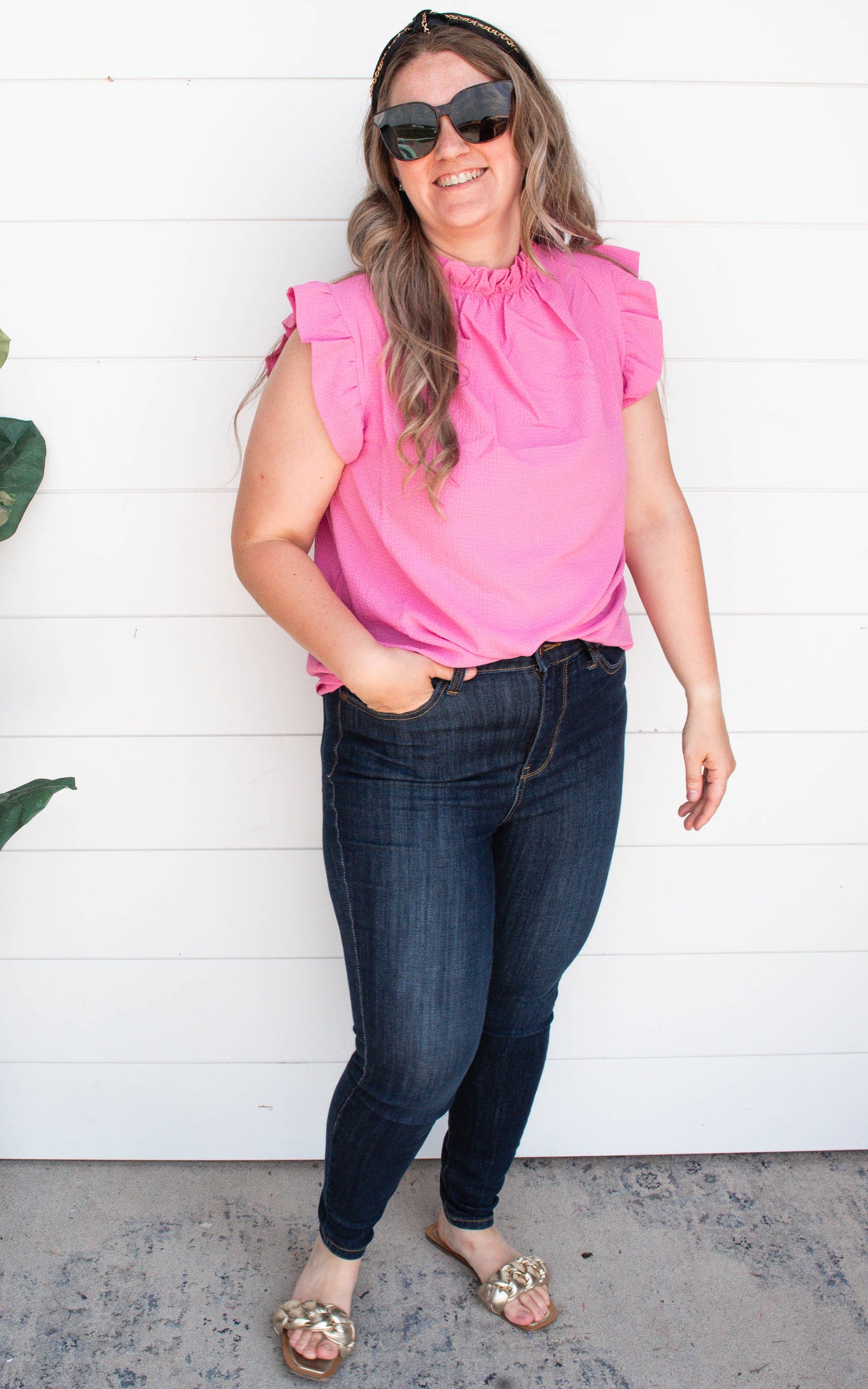 Introducing the Airflow Mock Neck Sleeveless Blouse - perfect for breezy summer days! With its airy design, this cool blouse will keep you looking and feeling fly all summer long. So don't wait - be the trendsetter of your town and get it today!