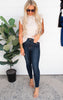 FIT DESCRIPTION: Sara is 5’7” and a size 5 in denim. She has a 36D bust. She is wearing a size Small. Be sure to watch the full FIT VID in the App (SHOP BAD HABIT) to see how it fits and feels.