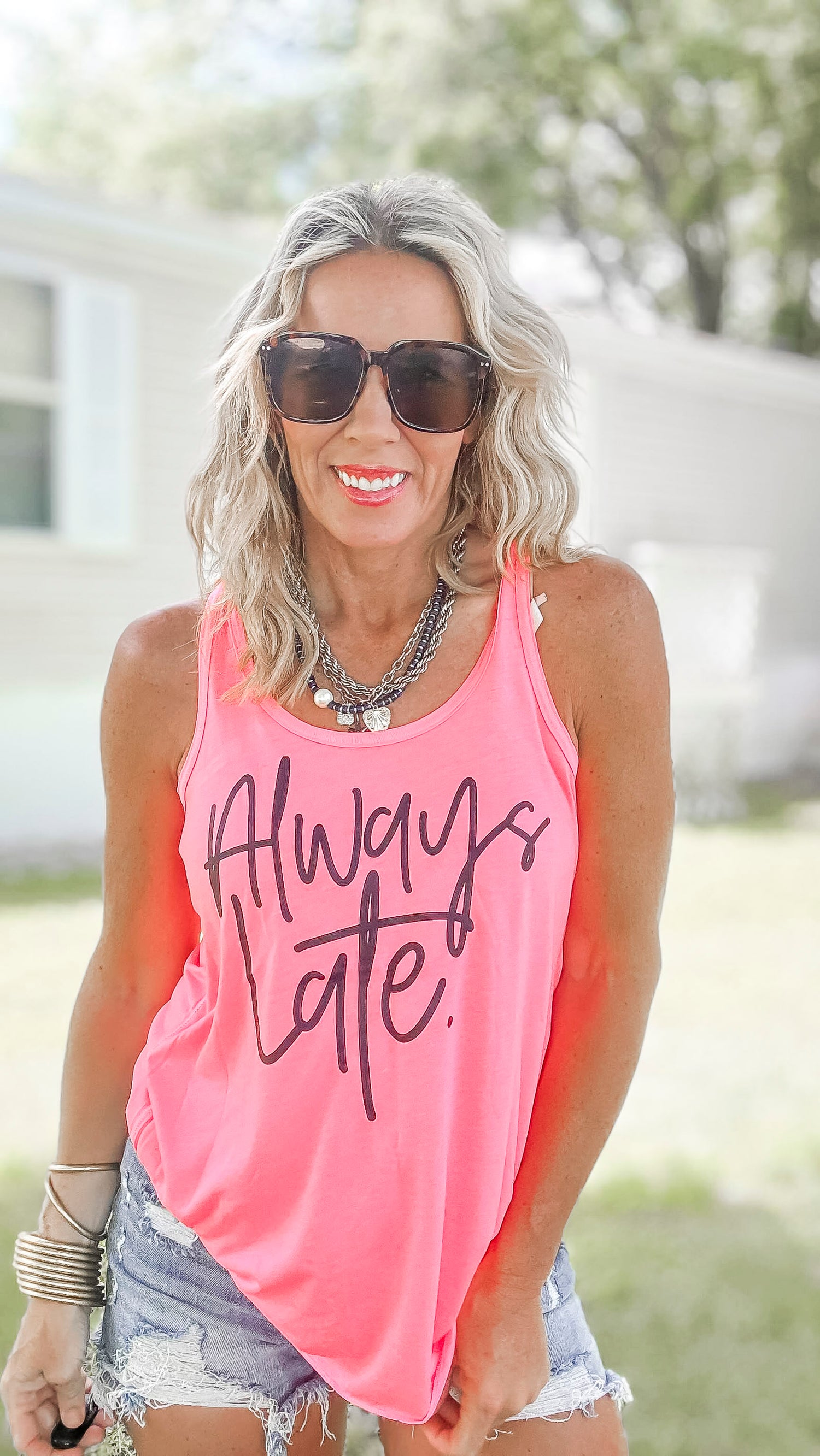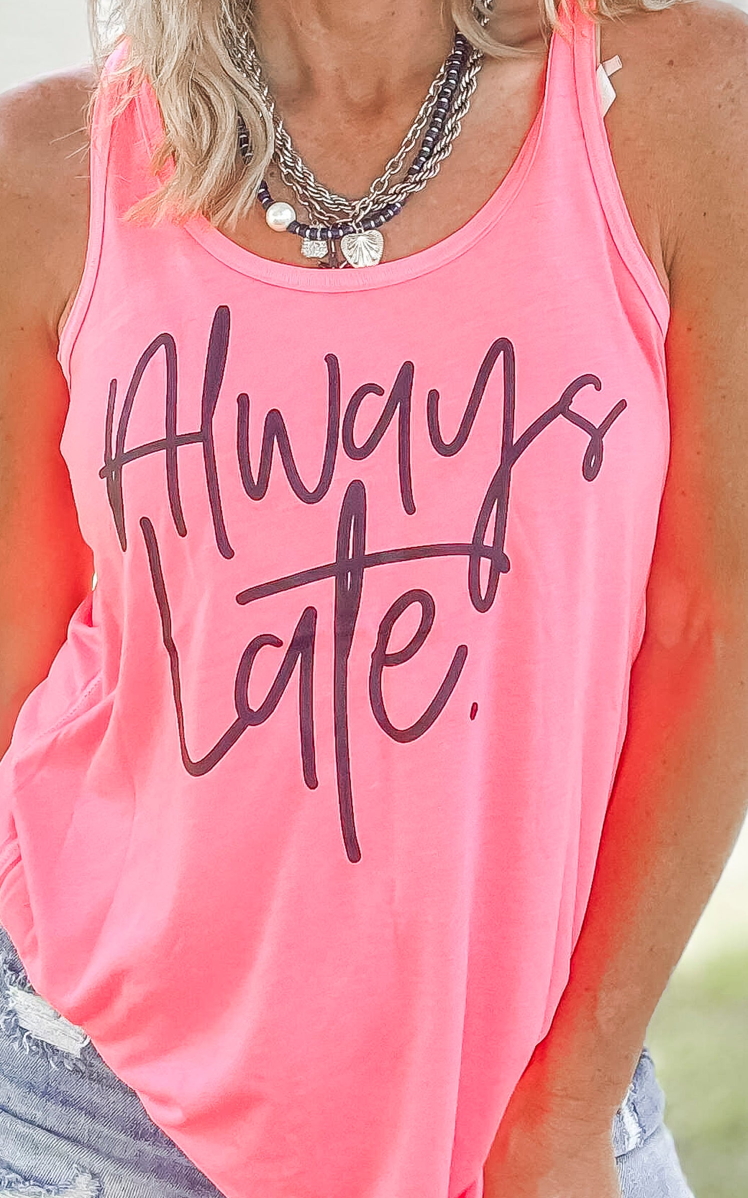 Always Late Graphic Racerback Tank Top