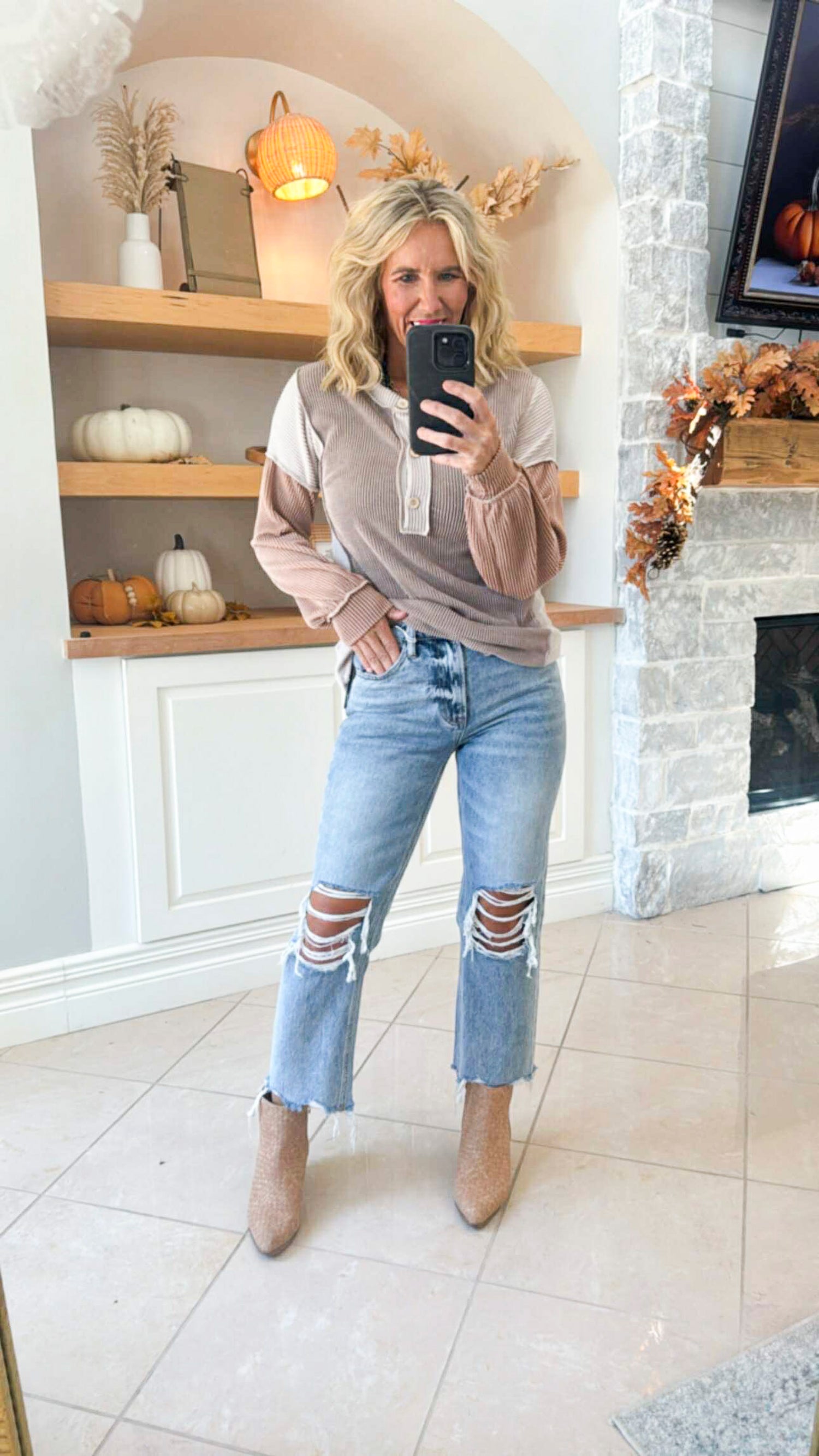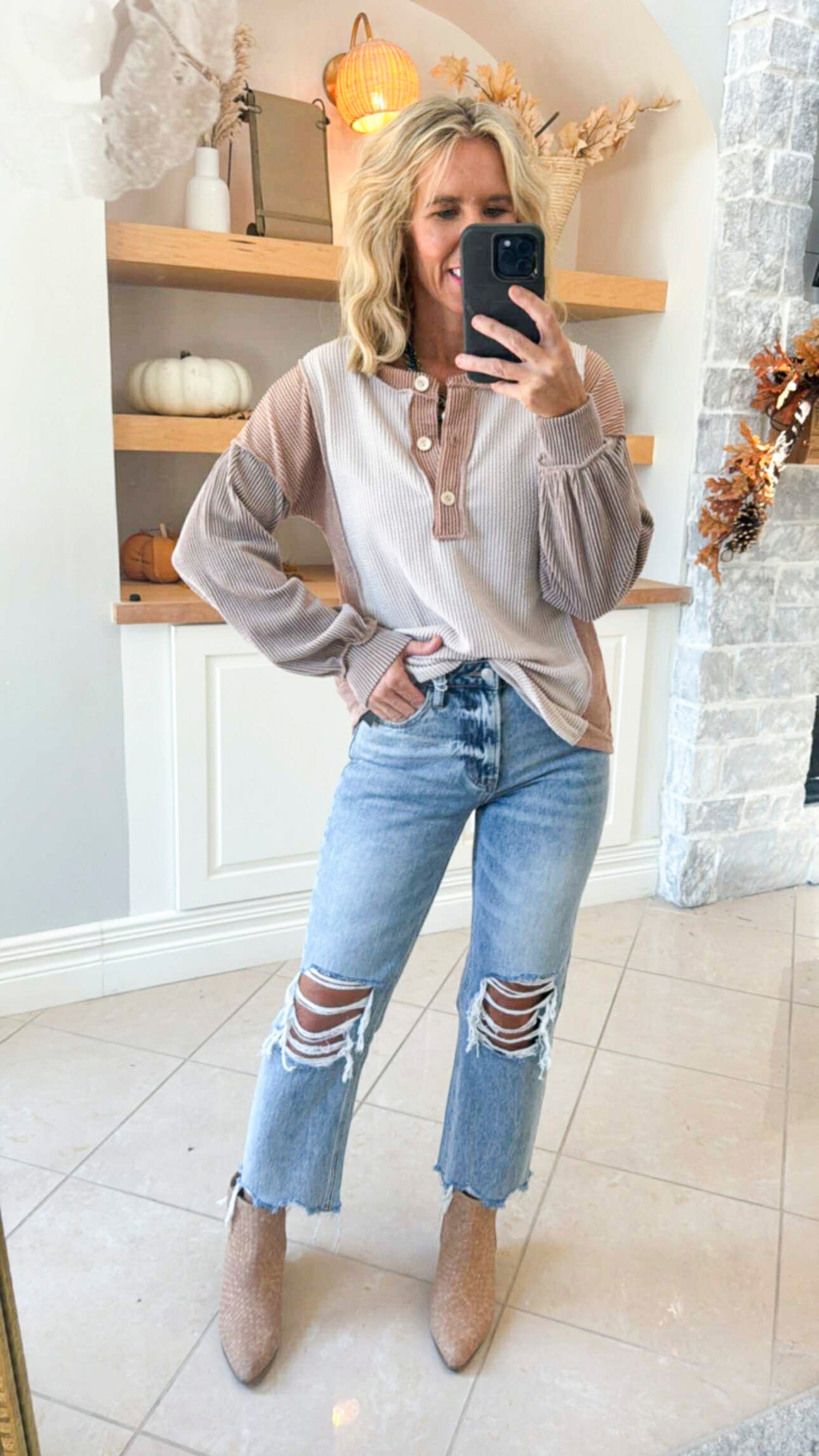 You are going to love this top! Our "Amalias Rib Long Sleeves Top" is the perfect piece for those days when you want to look put-together without even trying. The chunky ribbed texture is so cozy and feels amazing on, and the color-block design in these beautiful neutral tones makes it feel so fresh and stylish. It has a cute henley button placket that gives it a little extra detail. With its relaxed fit and soft feel, this top is your new go-to for an effortlessly chic and comfortable look.
