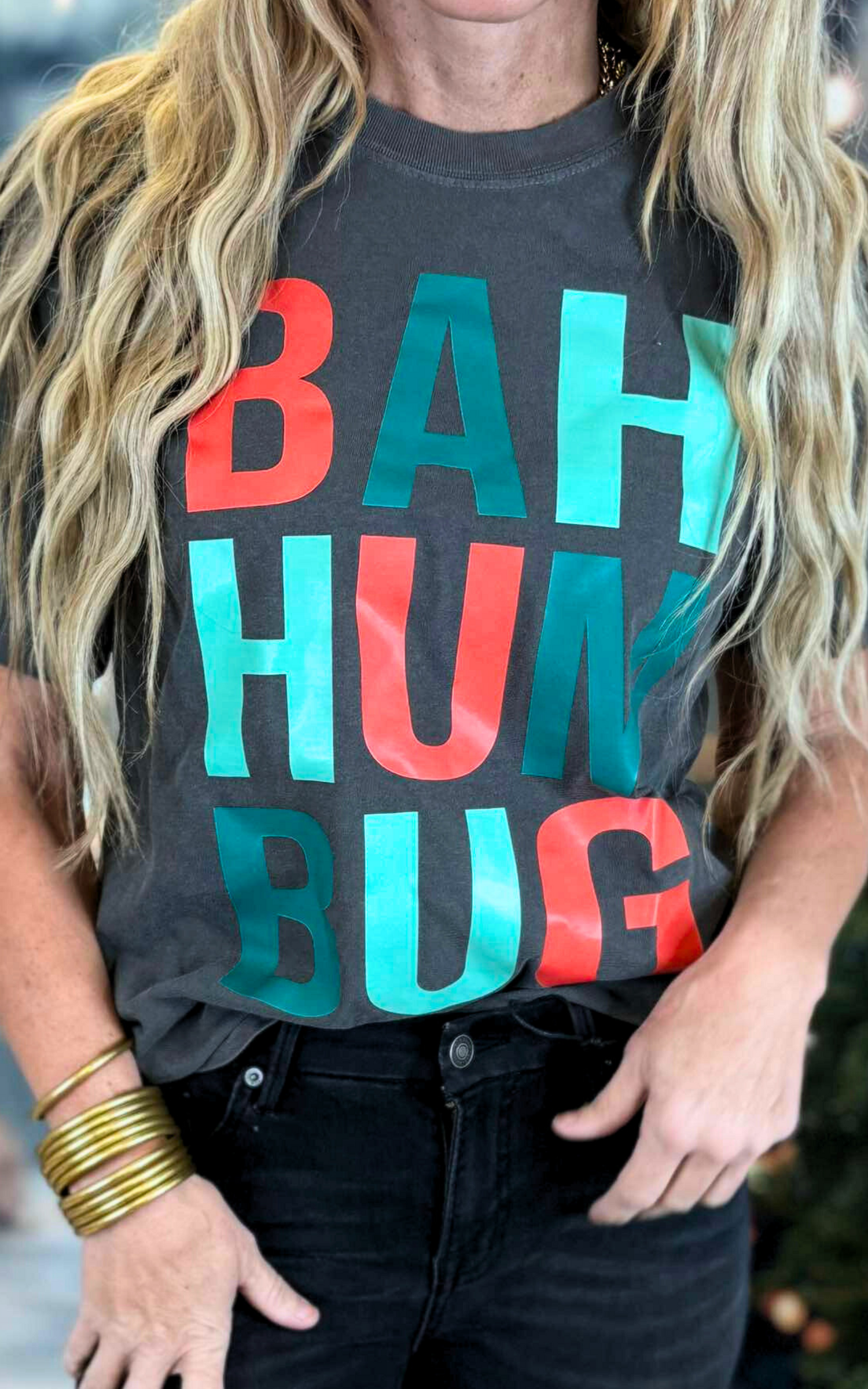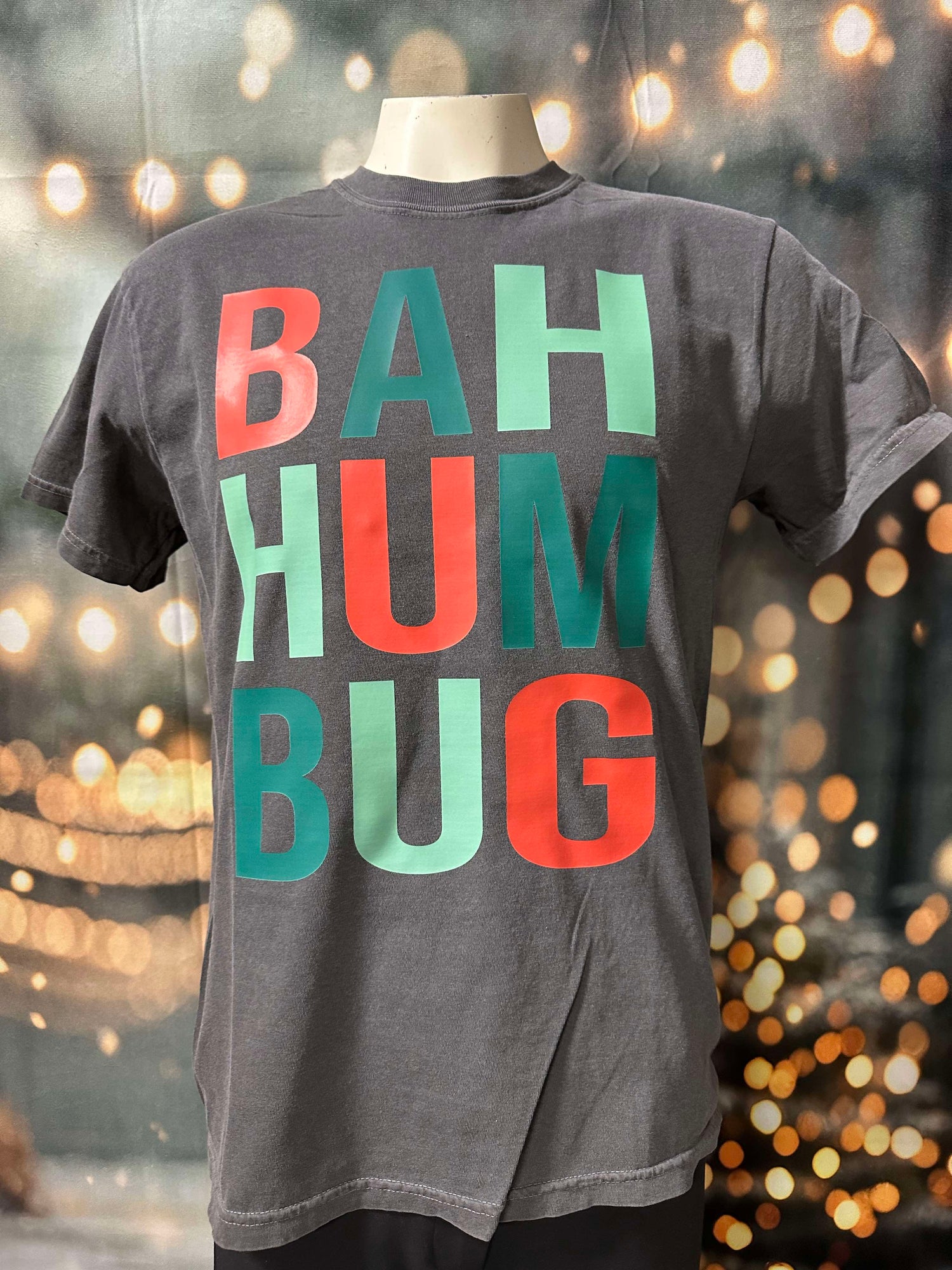 Get into the holiday spirit with our Bah Hum Bug t-shirt! Made from garment dyed fabric, this graphic tee is perfect for spreading some festive joy. With its playful design and comfortable fit, it's sure to become your go-to holiday shirt. Spread some holiday cheer and make a statement with this must-have t-shirt!**