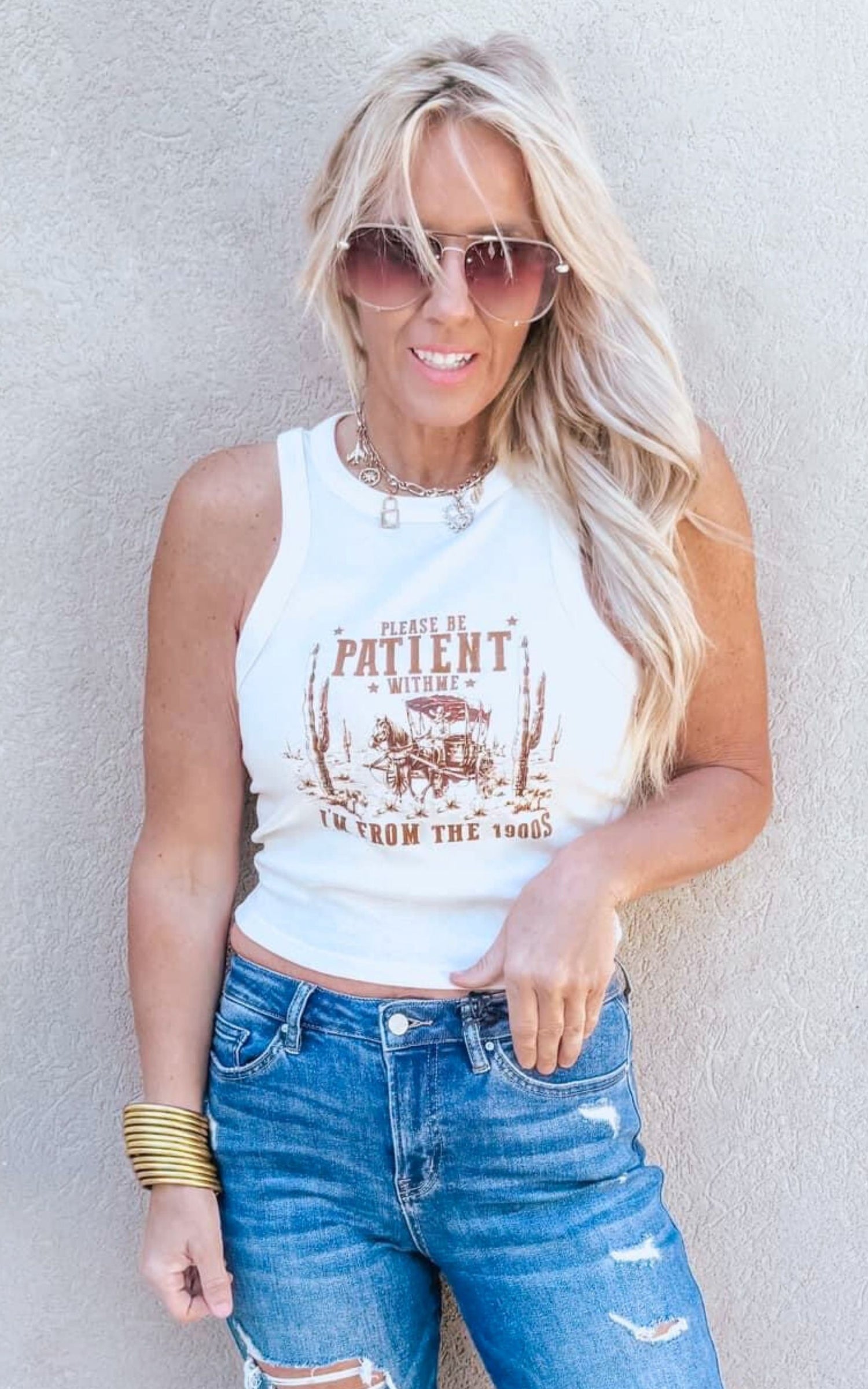 Be Patient Im from the 1900's Micro Rib Racer Tank Top - Final Sale