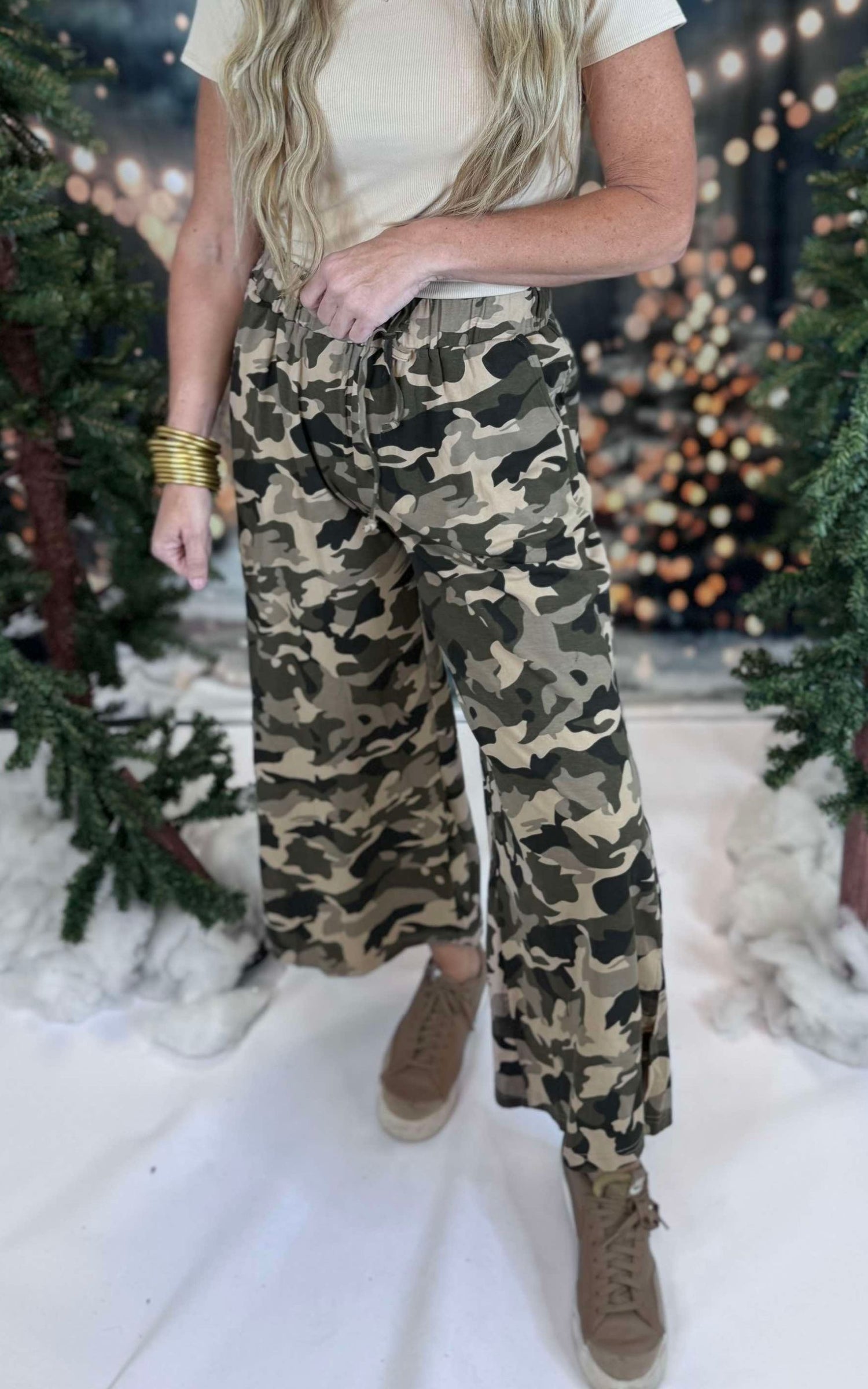 Beige Camo Vintage Washed Casual Pants | POL** - Final Sale