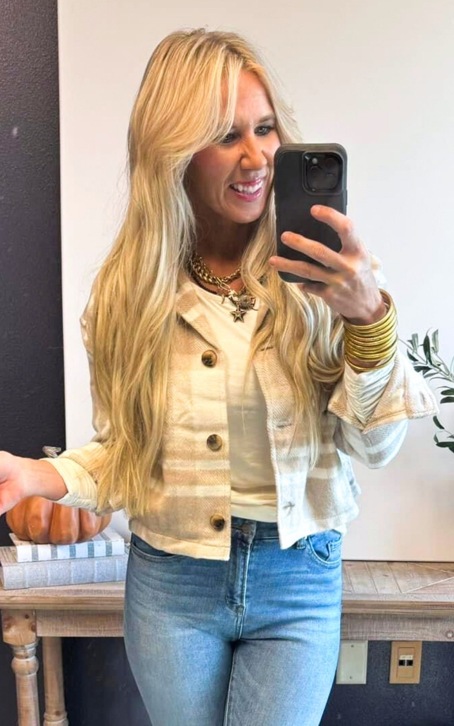 Beige Classic Plaid Cropped Shacket - Final Sale