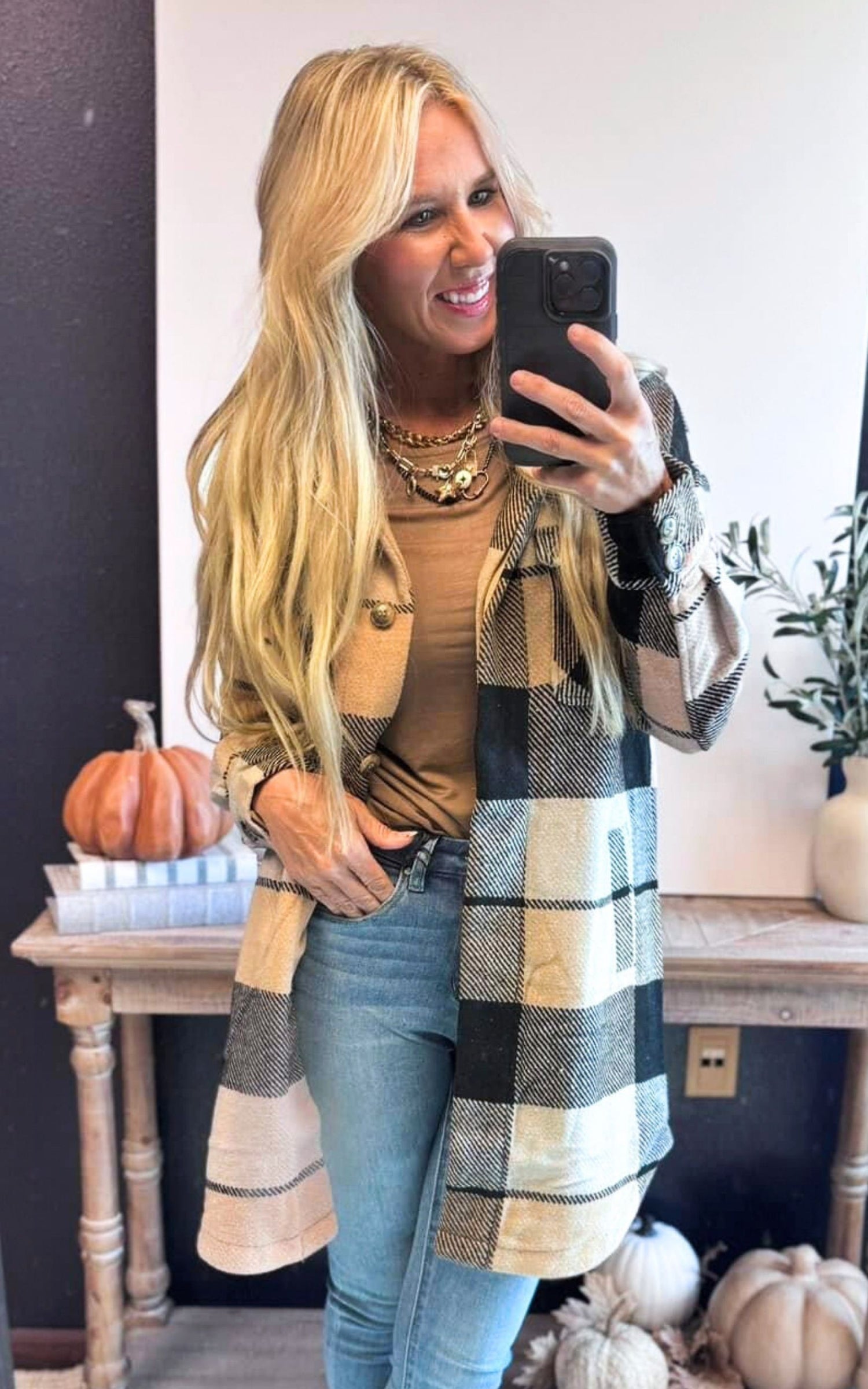 Black/Yellow Plaid Long Shacket