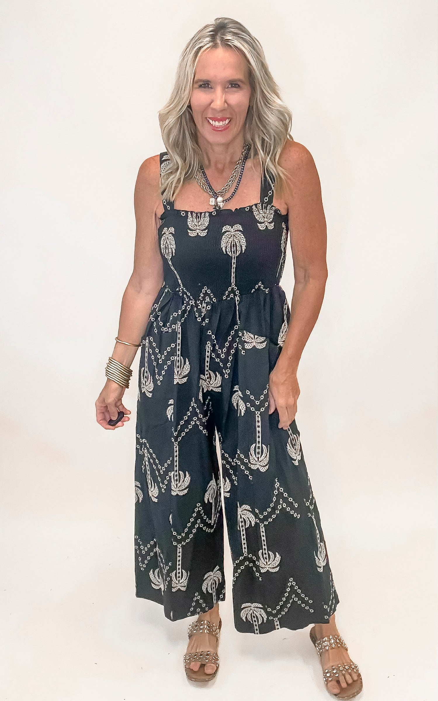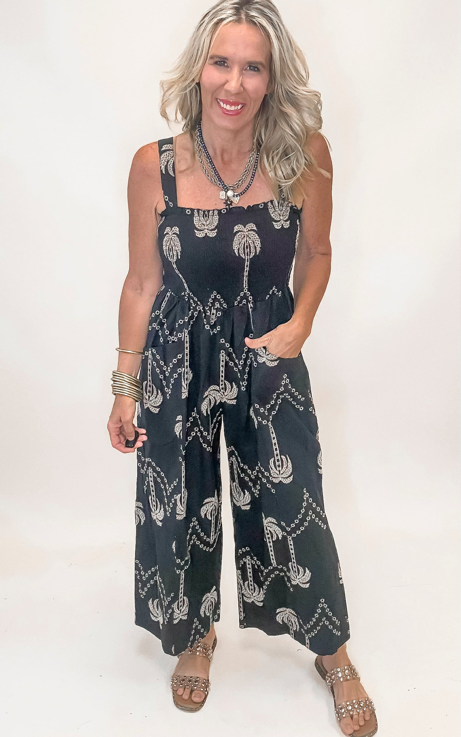 Step into effortless style with the Boho Smocked Wide-Leg Jumpsuit. Featuring a comfy smocked bodice and breezy wide legs, this jumpsuit lets you move freely while keeping cool. Perfect for sunny days or casual nights out, its playful design adds a touch of carefree charm to your wardrobe.