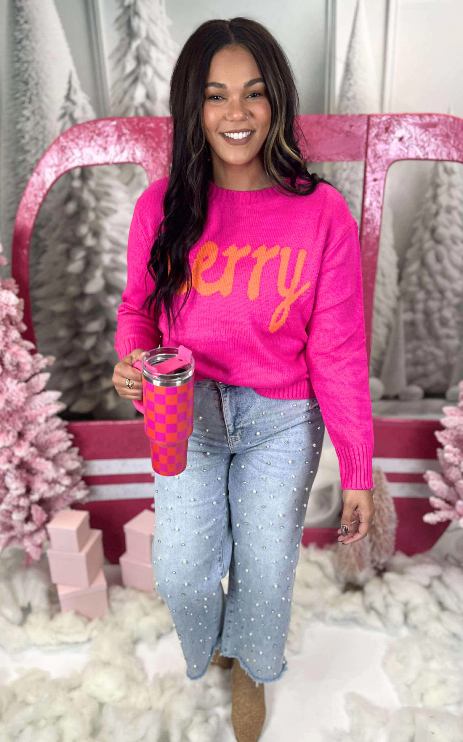 Bright Pink Merry Sweater