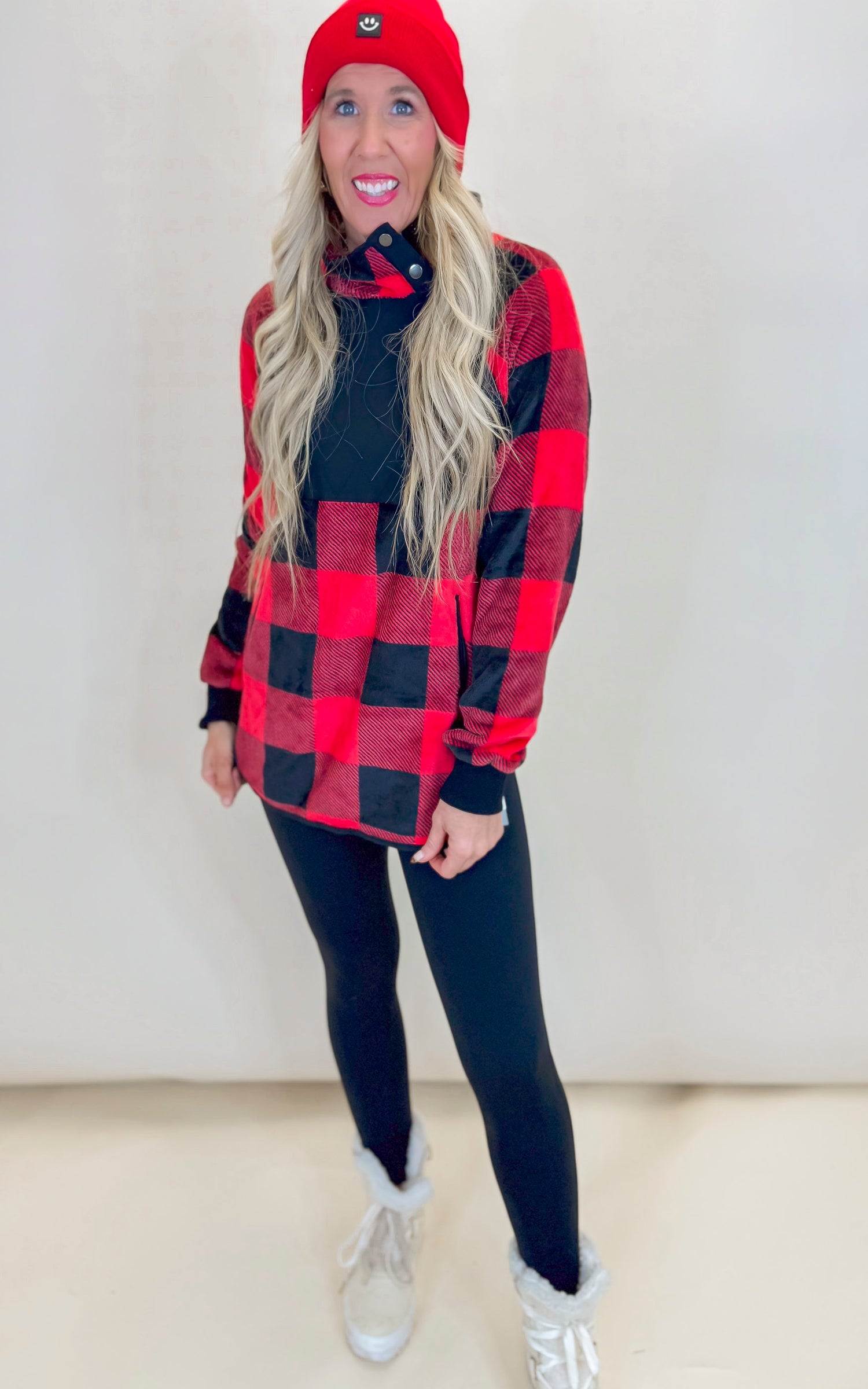 Elevate your style with our Buffalo Plaid Check Long Sleeve Top. Featuring a classic plaid pattern and long sleeves, this top is perfect for any occasion. Stay comfortable and chic all day long. Upgrade your wardrobe today!