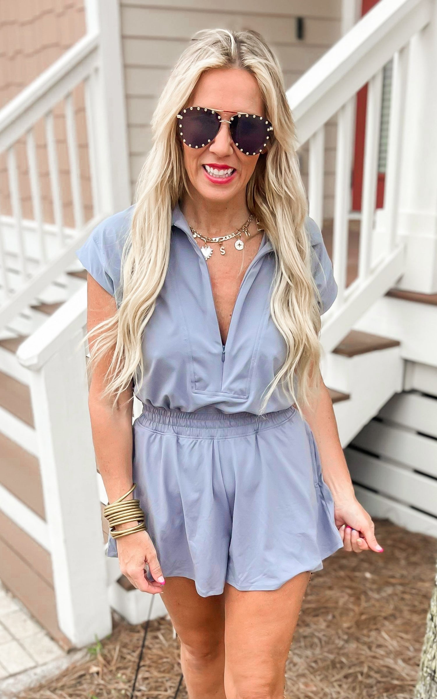 Butter Short Sleeve Quarter Zip Romper | RAE MODE - Final Sale