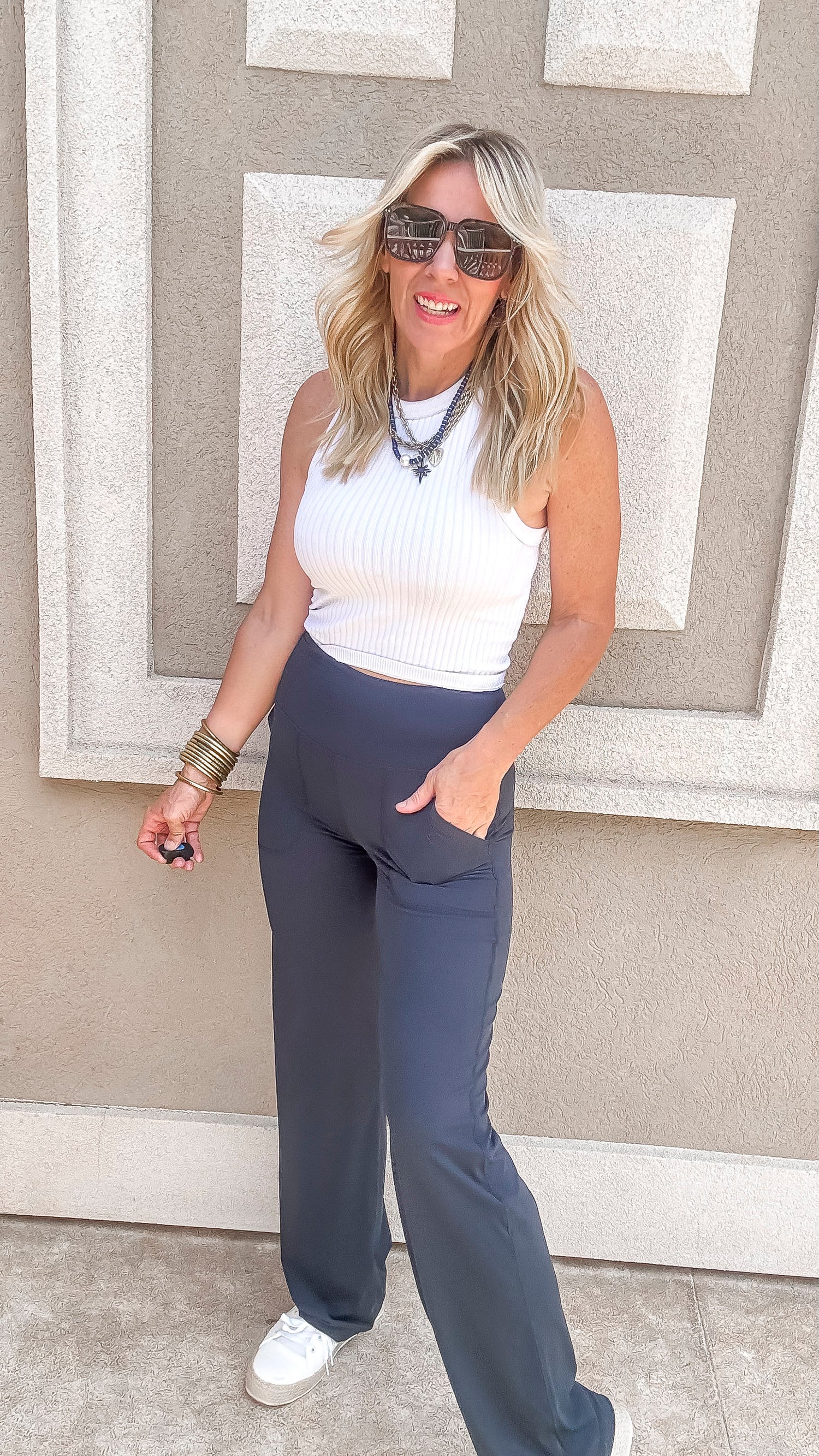 These buttery soft yoga pants offer comfort and style for your everyday wear or yoga practice. With a straight leg design, they provide a flattering fit and the ultimate stretch for all your movements. Take your yoga game to the next level with these comfy pants!