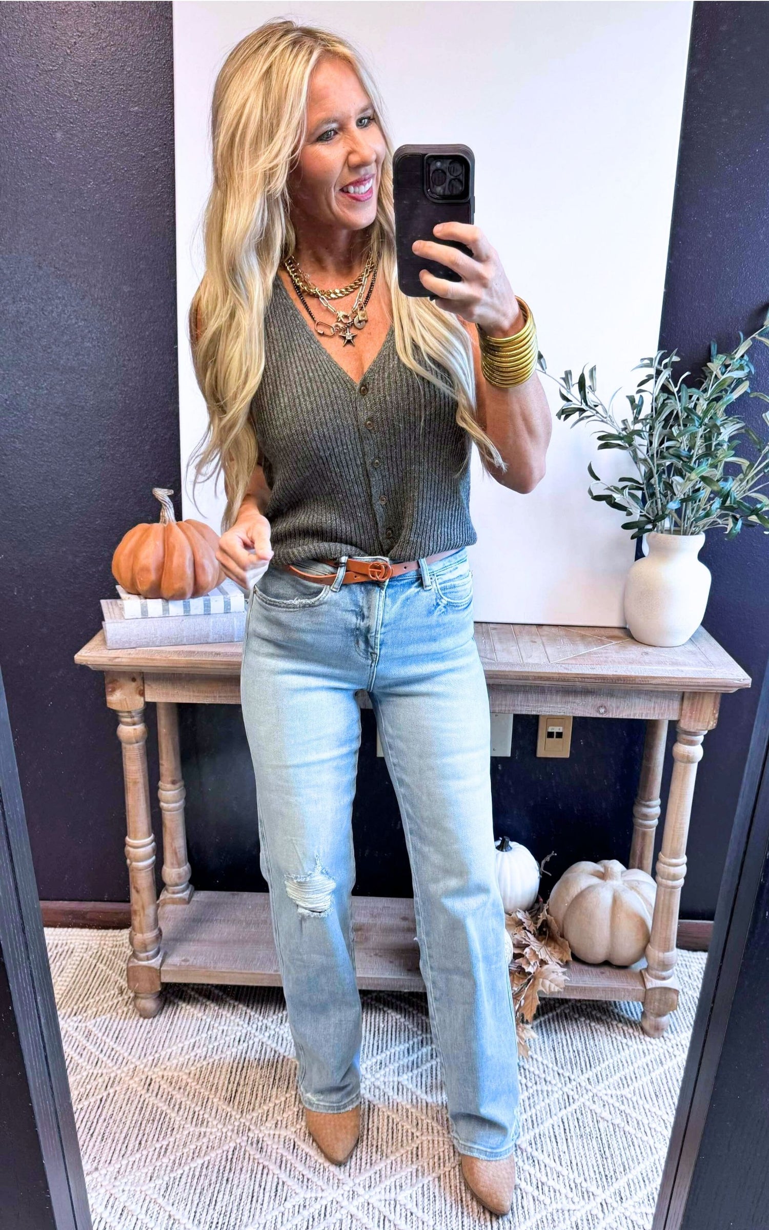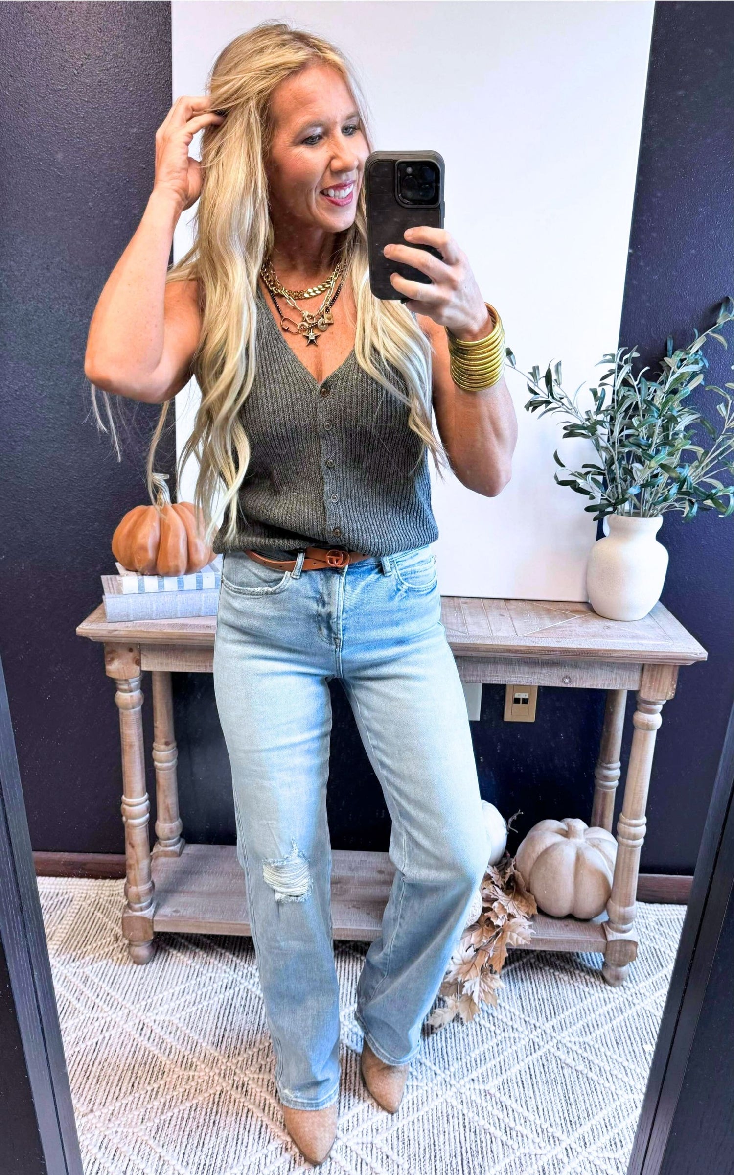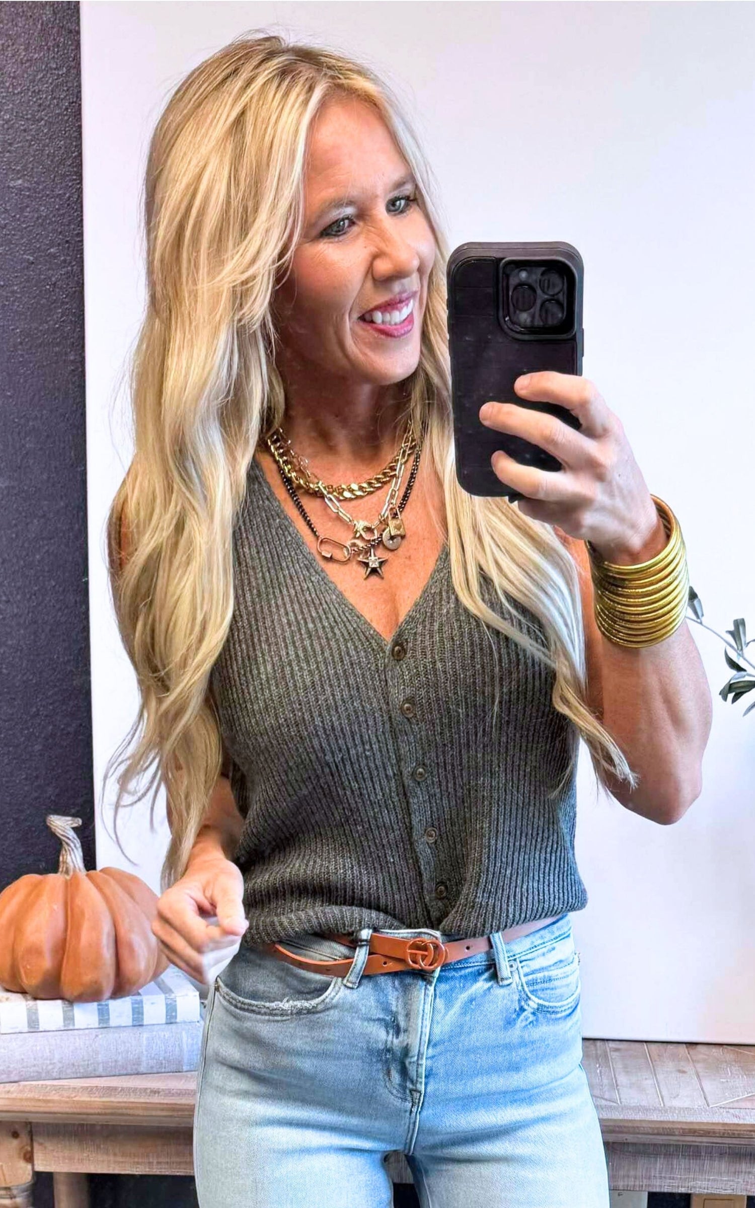 Stay warm and stylish with our Charcoal Ribbed V-Neck Sweater Vest. The ribbed design adds texture and dimension to your outfit, making it perfect for both casual and dressy occasions. Plus, the v-neckline elongates your silhouette for a flattering look. A must-have for any wardrobe!