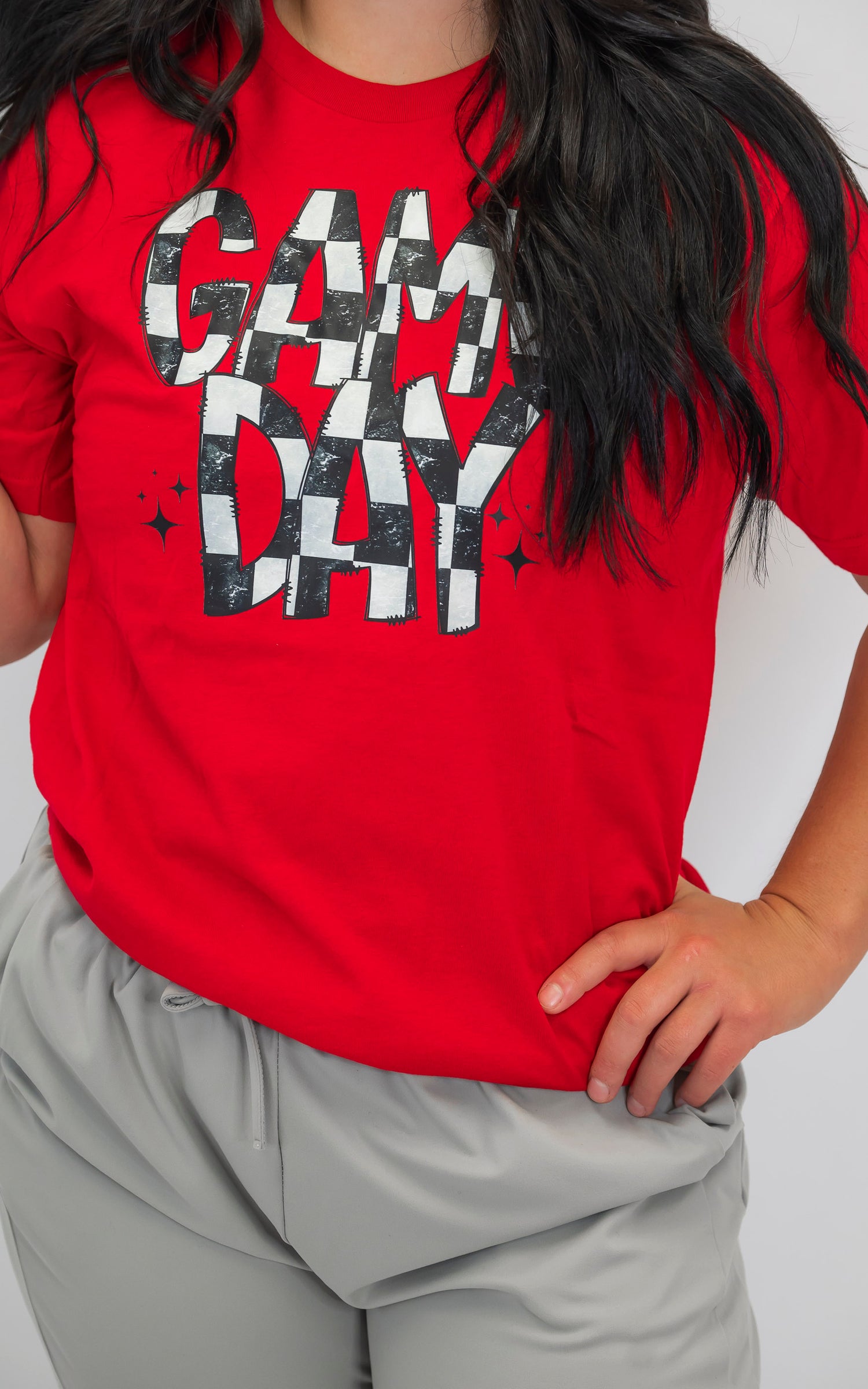 Join in on the game day fun with our Checkered GameDay Graphic T-shirt! Featuring a stylish checkered design and comfortable fit, this shirt is perfect for showing off your team spirit. Stand out from the crowd and support your team in style!