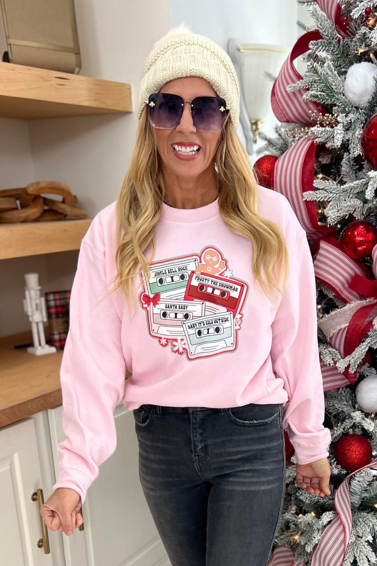 This festive Christmas Mixtape Mix Crewneck Sweatshirt ensures you stay warm all season long. Get ready to get your groove on in style! 'Tis the season, so cozy up and jam out!**