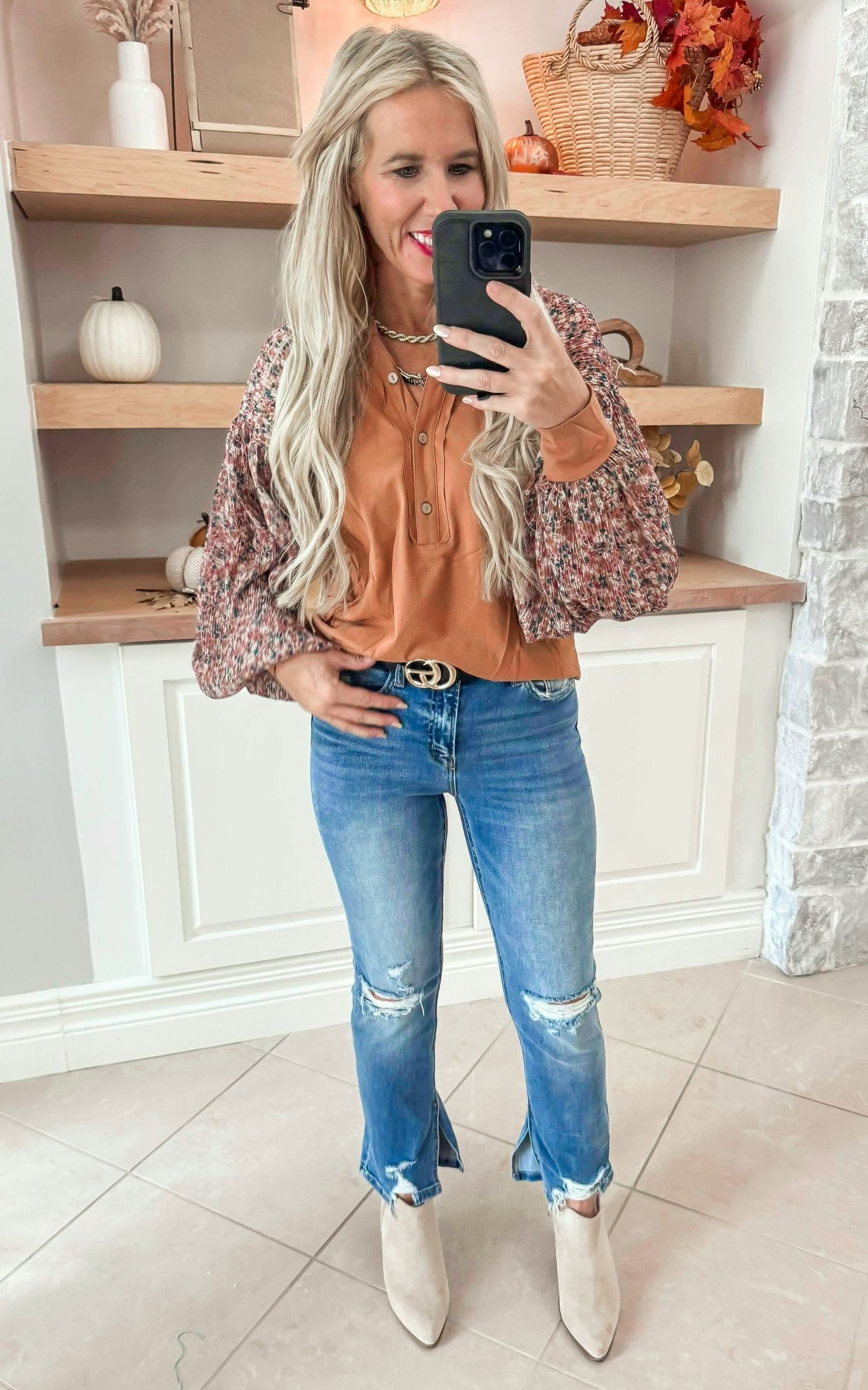 Elevate your wardrobe with our Cinnamon Mixed Fabric Button Top! Made with luxurious mixed fabric, this top features delicate buttons for an elegant touch. Perfect for any occasion, it effortlessly combines comfort and style. Upgrade your look and feel confident in this versatile piece!