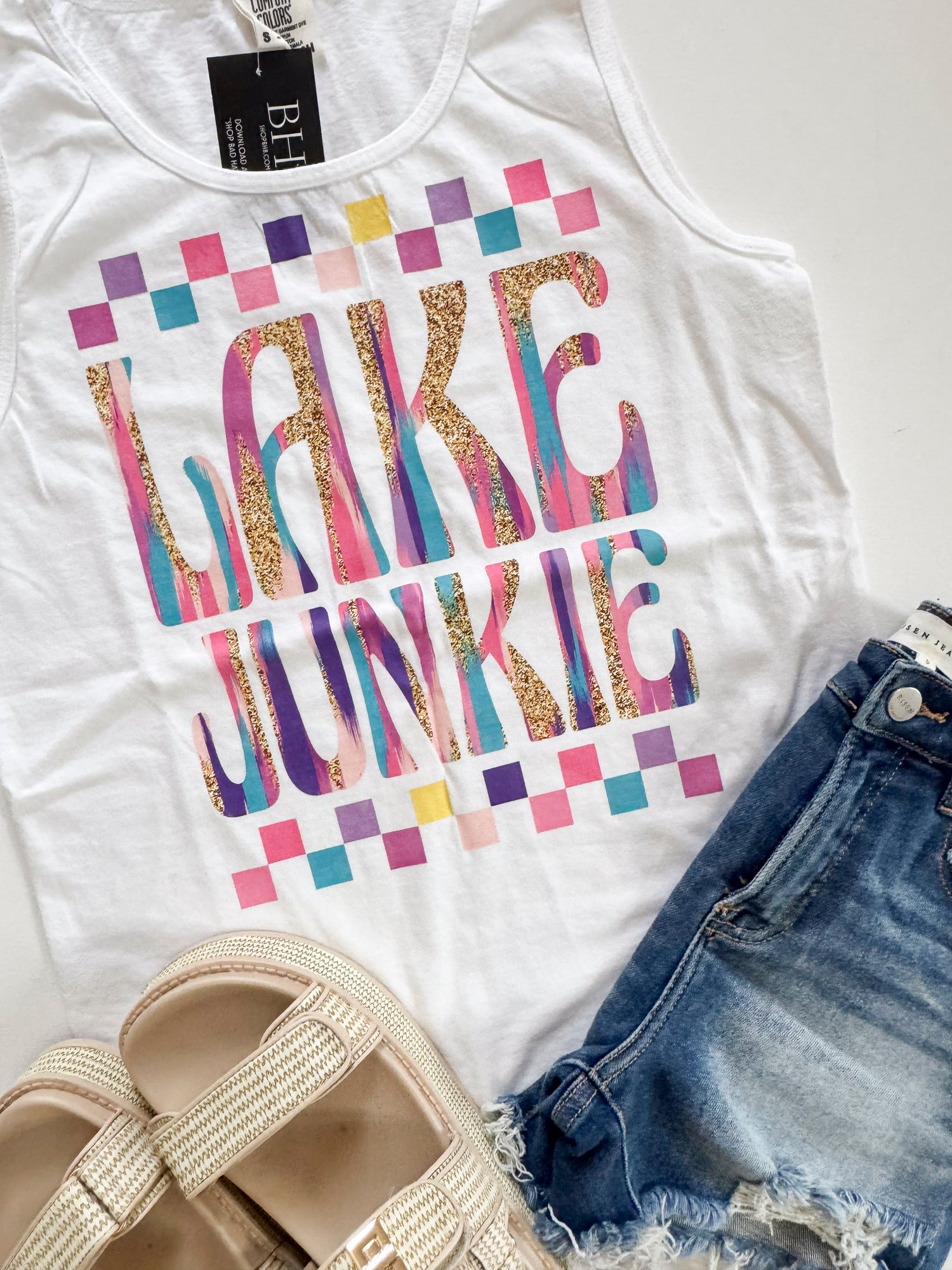 Color Check Lake Junkie Garment Dyed Graphic Tank Top