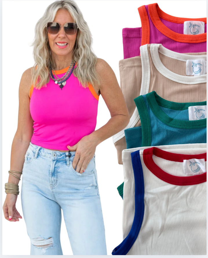 Contrast Trim Hold Tight Tank Top | Salty Wave *4 Colors**