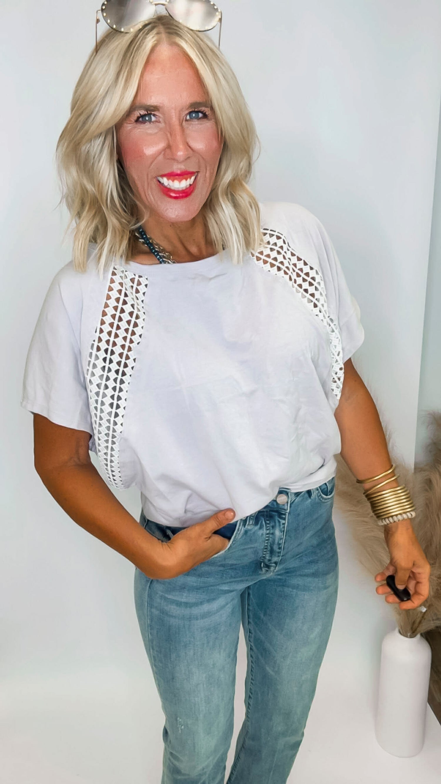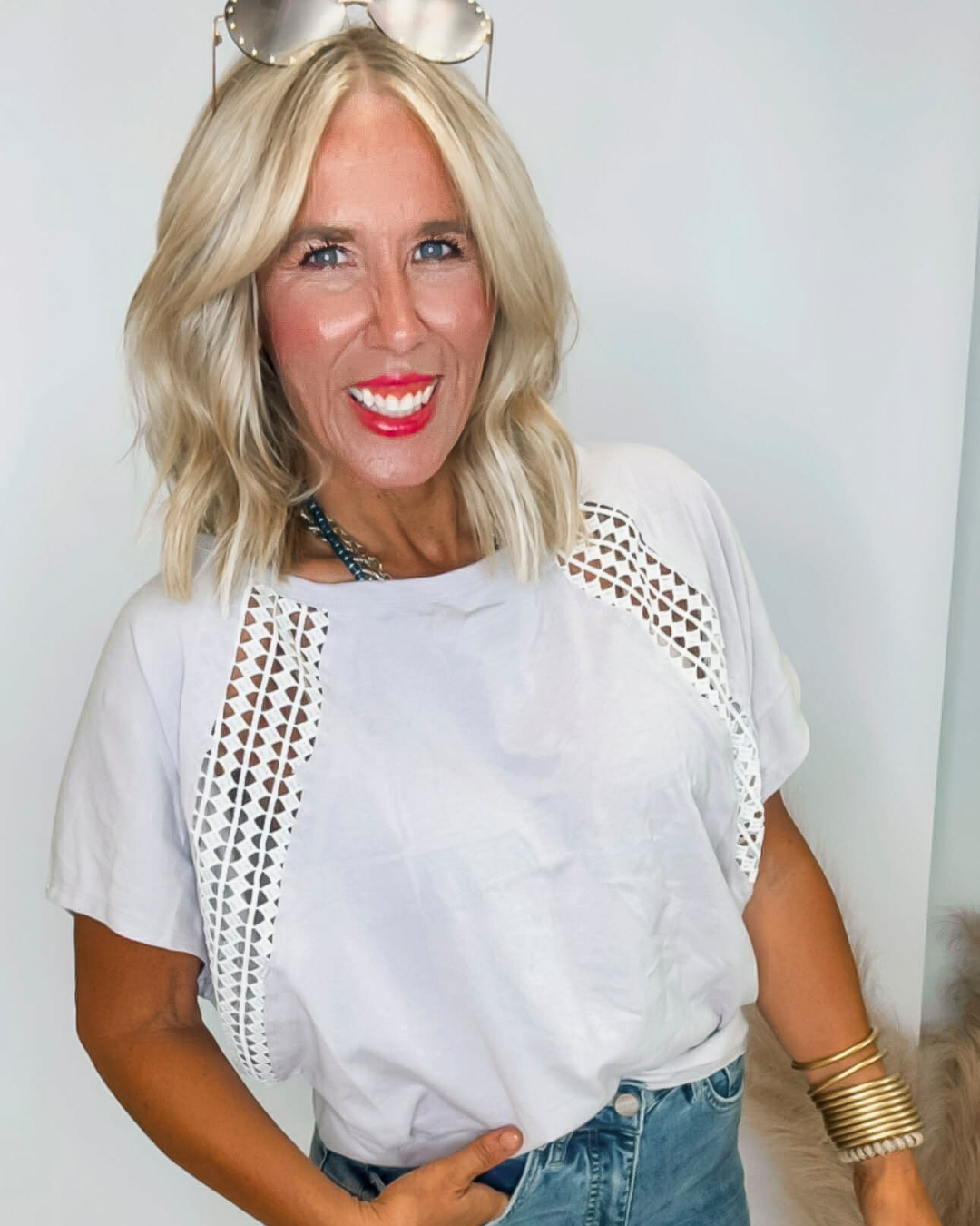 This playful top combines soft cotton span fabric with charming diamond crochet lace details, adding a touch of whimsy to your wardrobe. Its breathable material ensures comfort all day, while the intricate lace brings a fun, flirty vibe perfect for casual outings or dressy occasions. Elevate your style with this delightful blend of comfort and creativity.