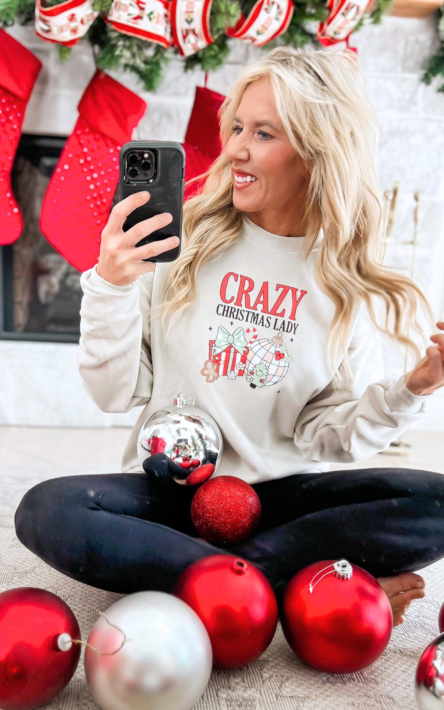 Make a statement this Christmas with our Crazy Christmas Lady Crewneck Sweatshirt - coz you don't have to be a Grinch to show your holiday spirit! Add some festive flair and holiday cheer to your wardrobe. Rock it. Own it. Love it!**