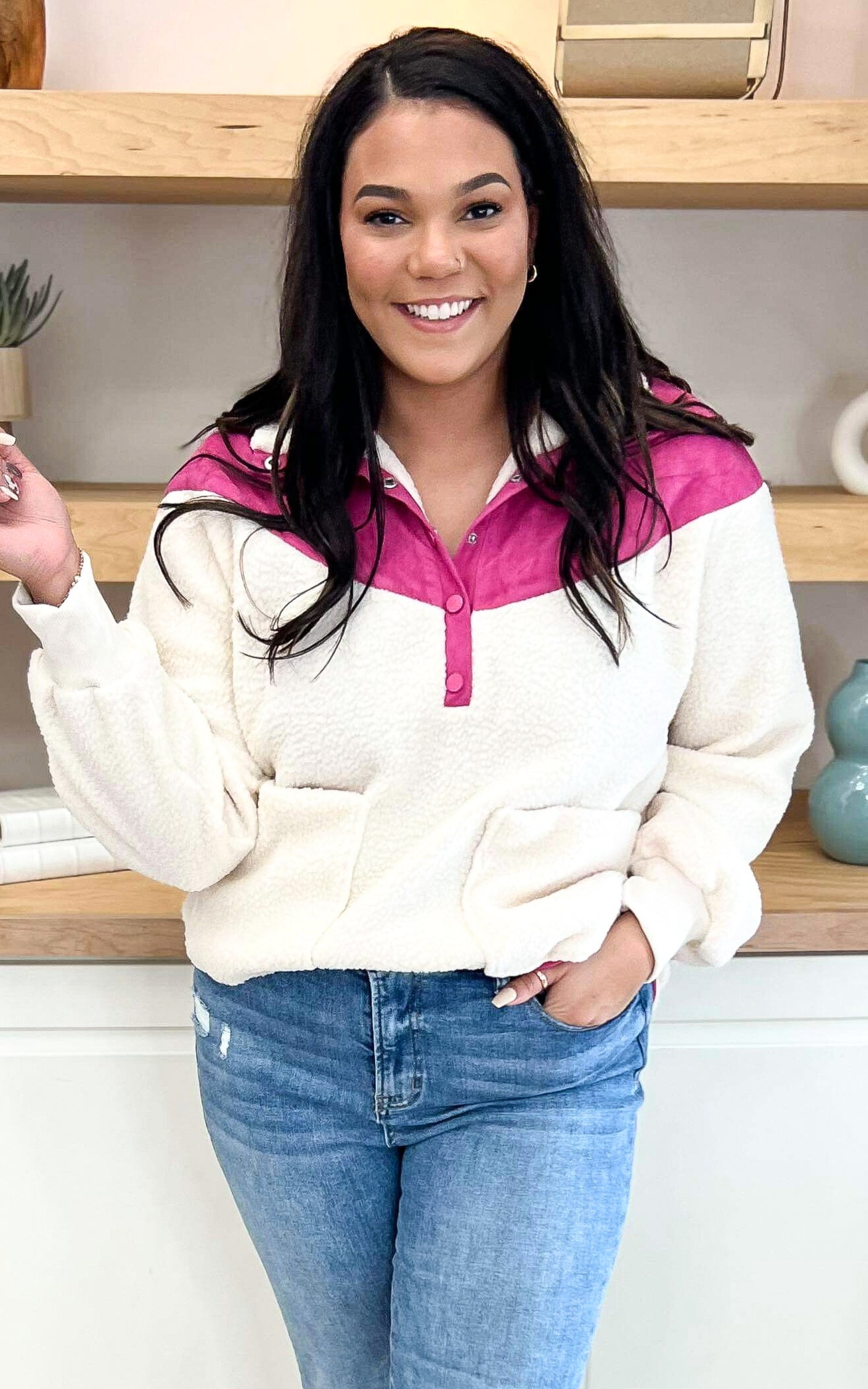 Cream Sherpa Jacket w/ a Pop of Fuchsia - Final Sale*