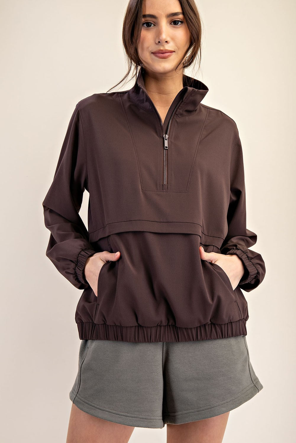 Crinkle Woven Quarter Zip Active Jacket | RAE MODE