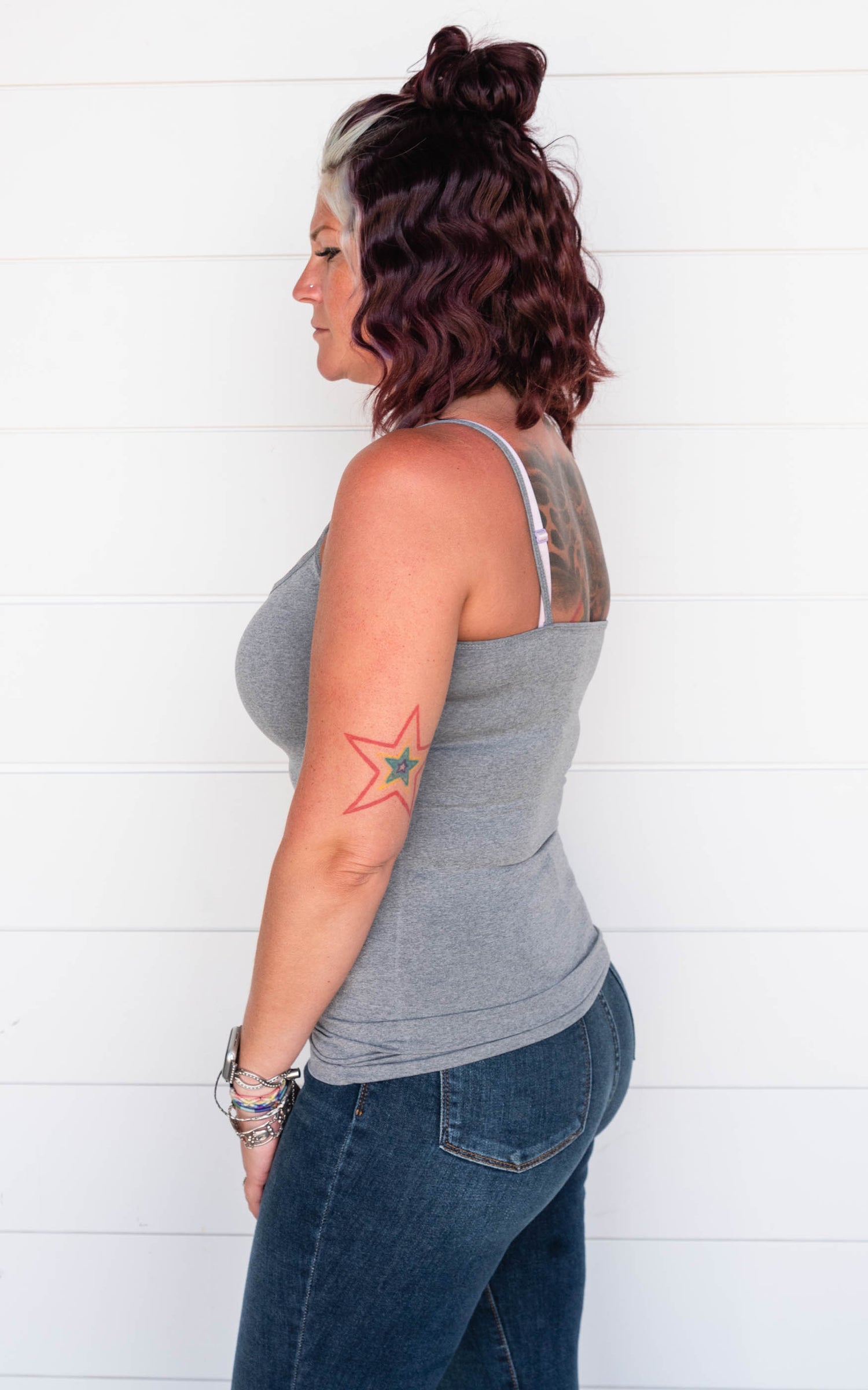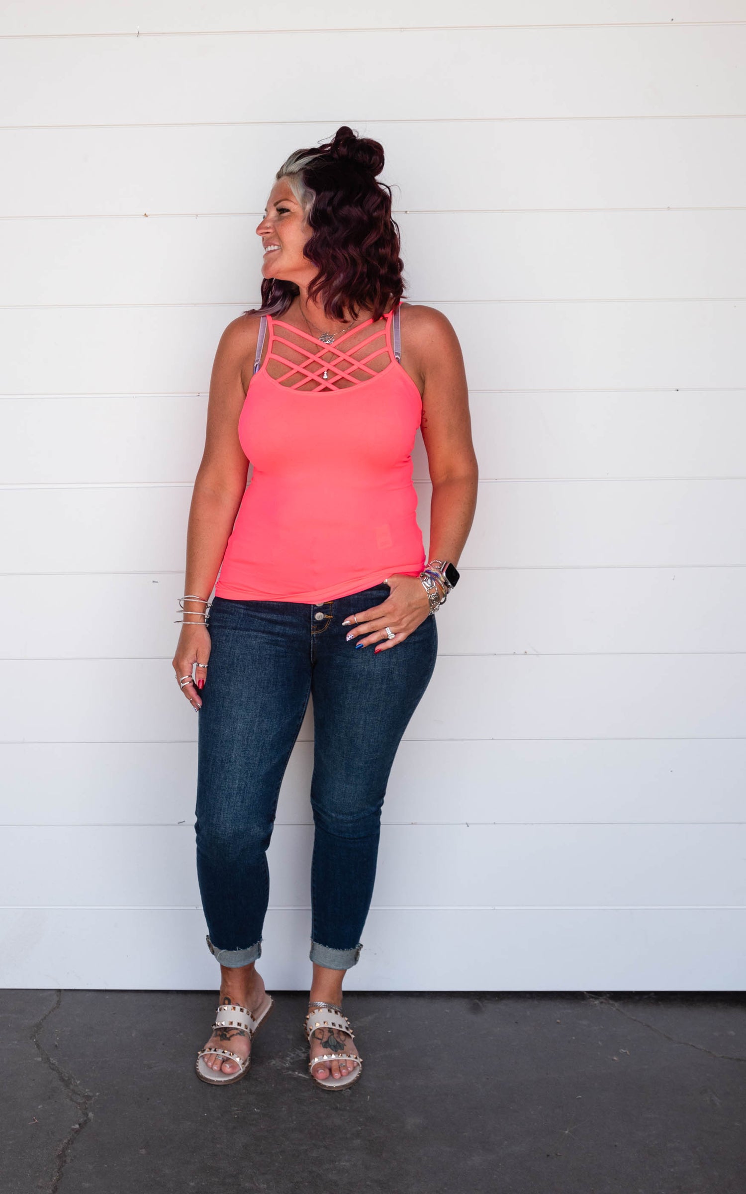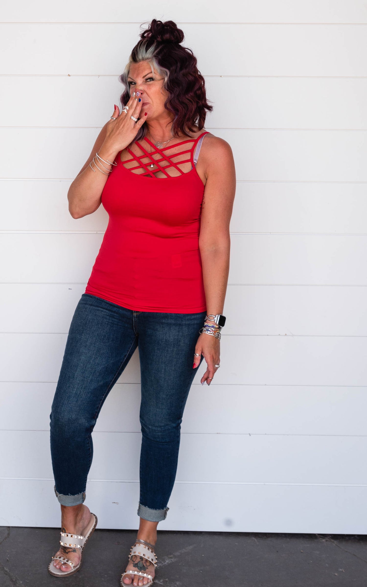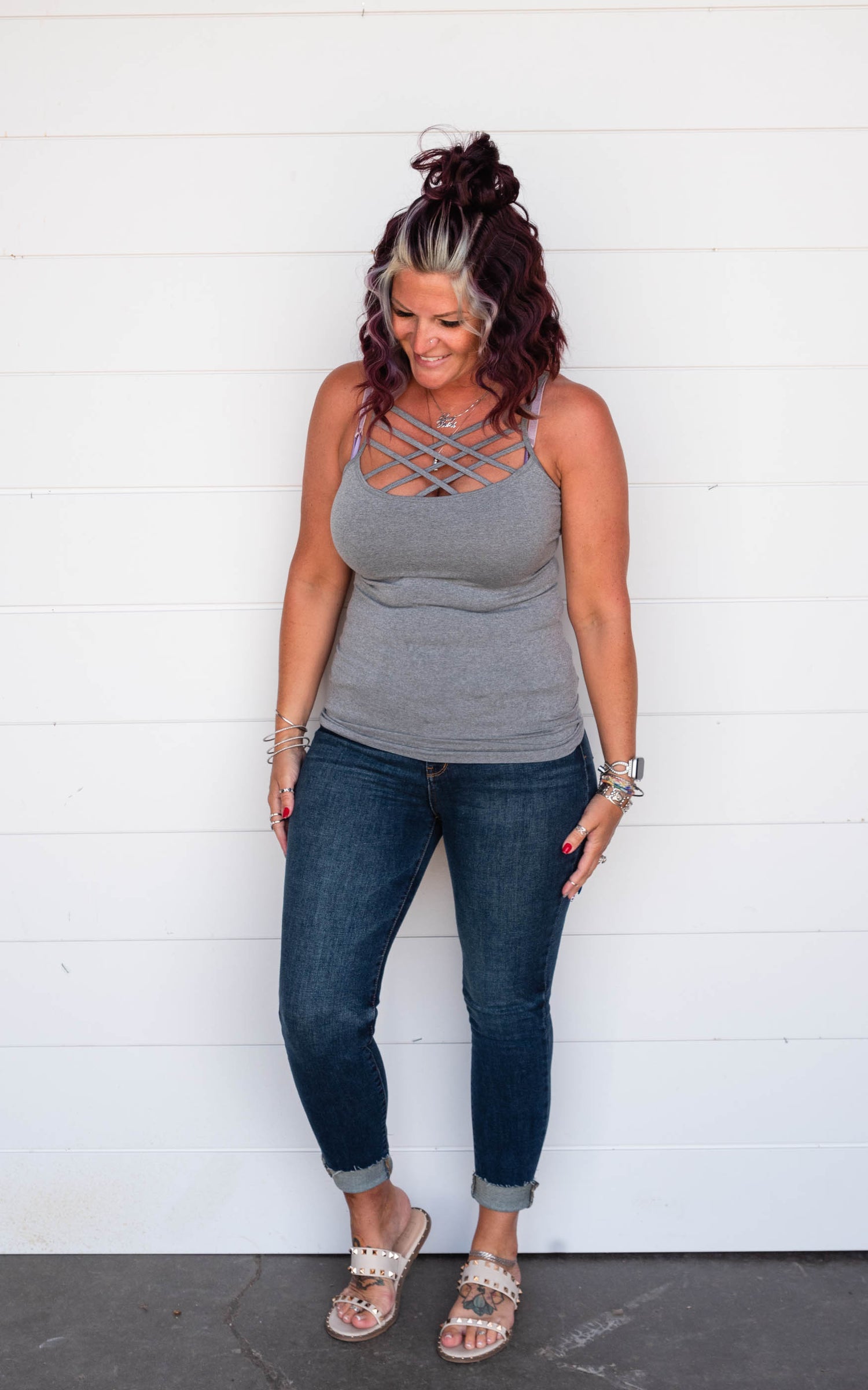This criss cross tank top is a great style to wear alone or layer under those v-neck.