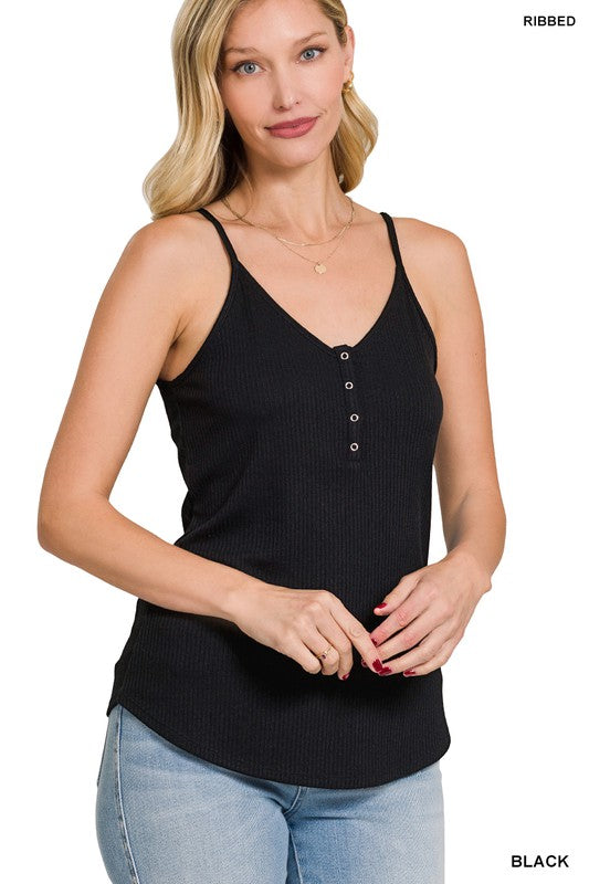 RIBBED SNAP BUTTON CLOSURE CAMI TANK TOP - Final Sale