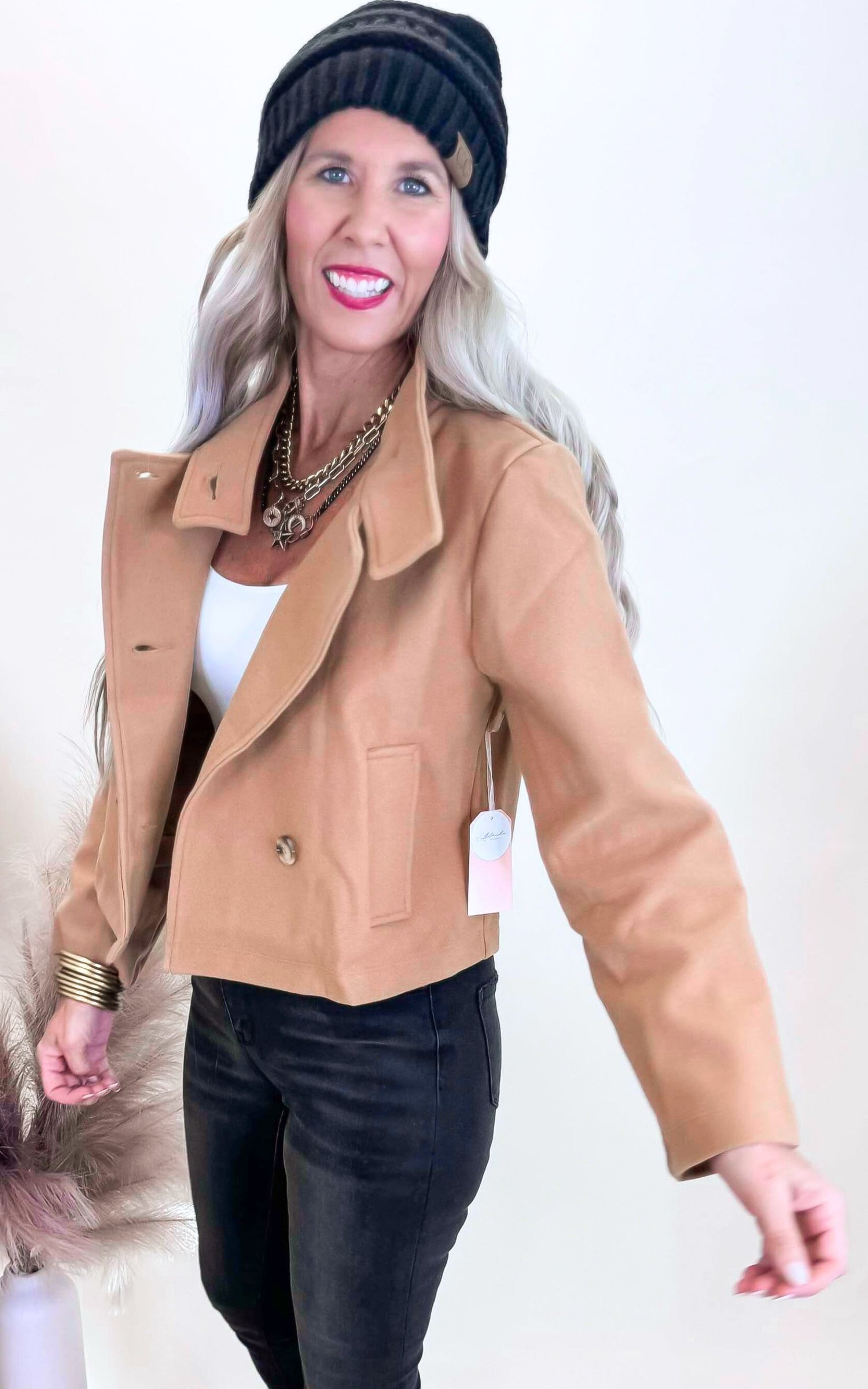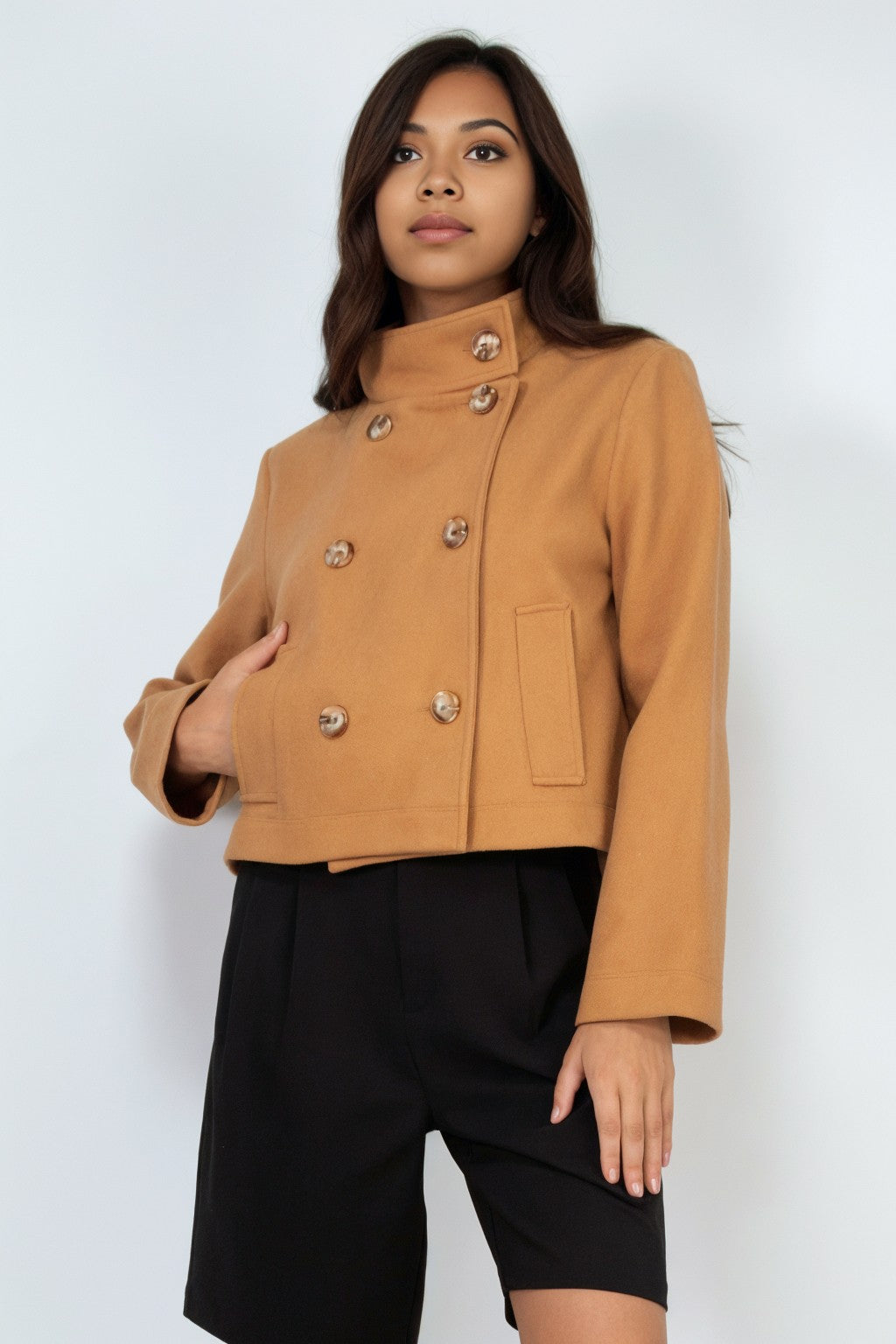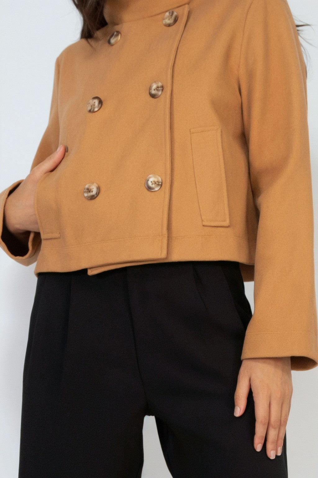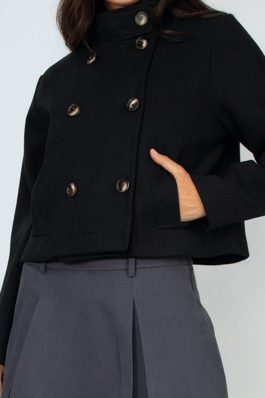 Double-Breasted Solid Crop Coat - Final Sale