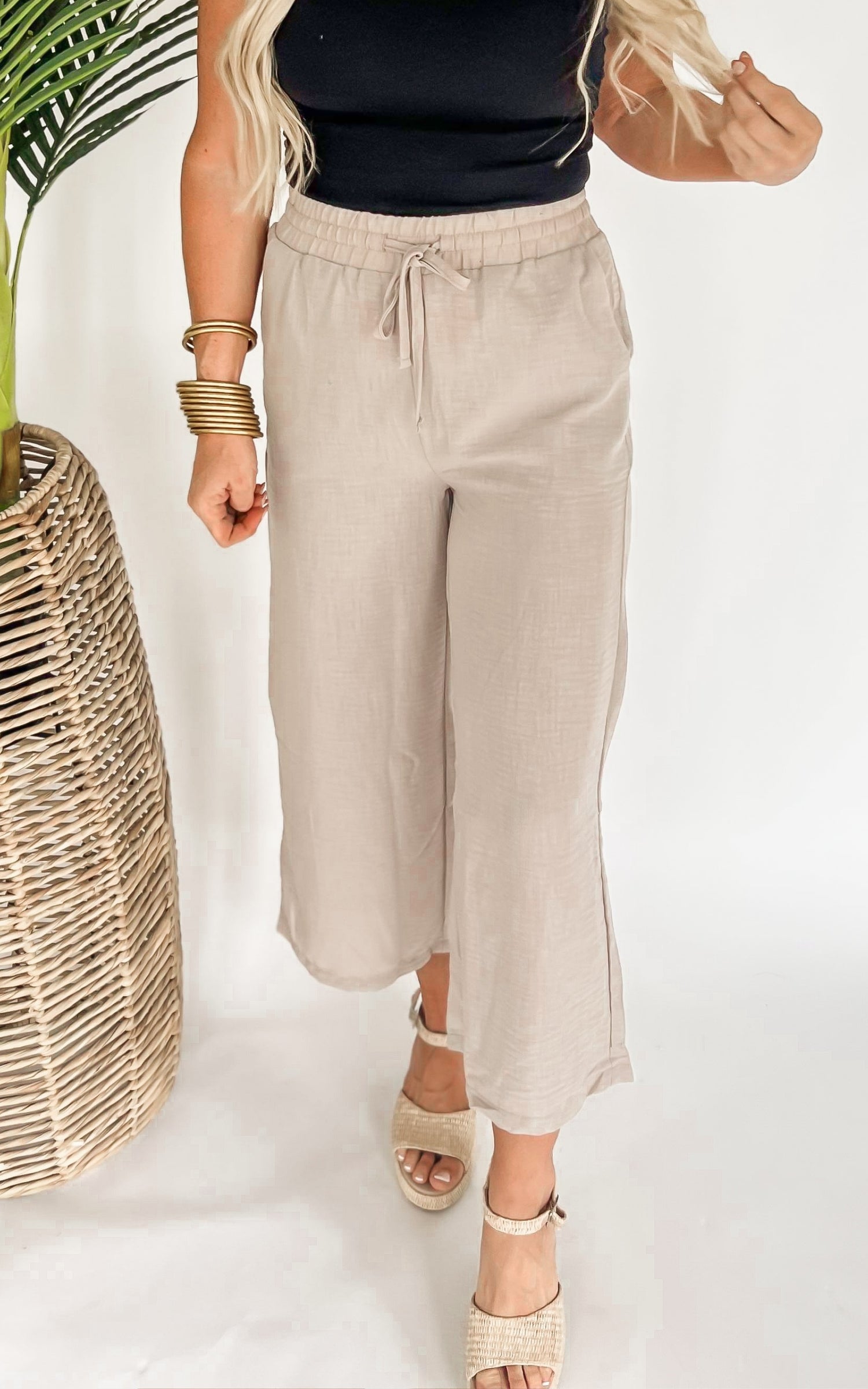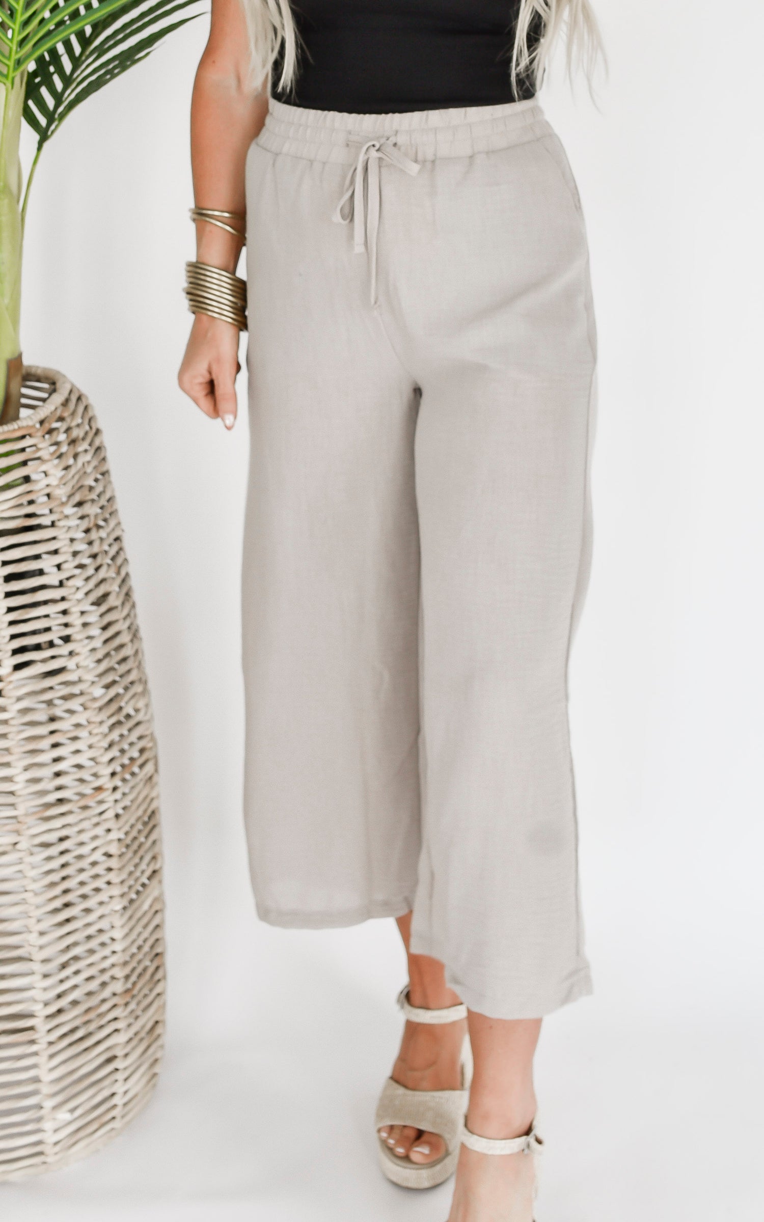 The Abby Drawstring Crop Wide Leg Pants - Final Sale