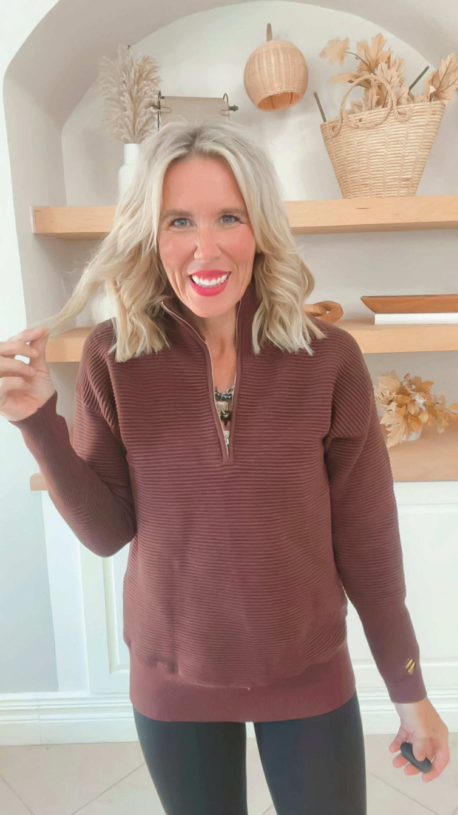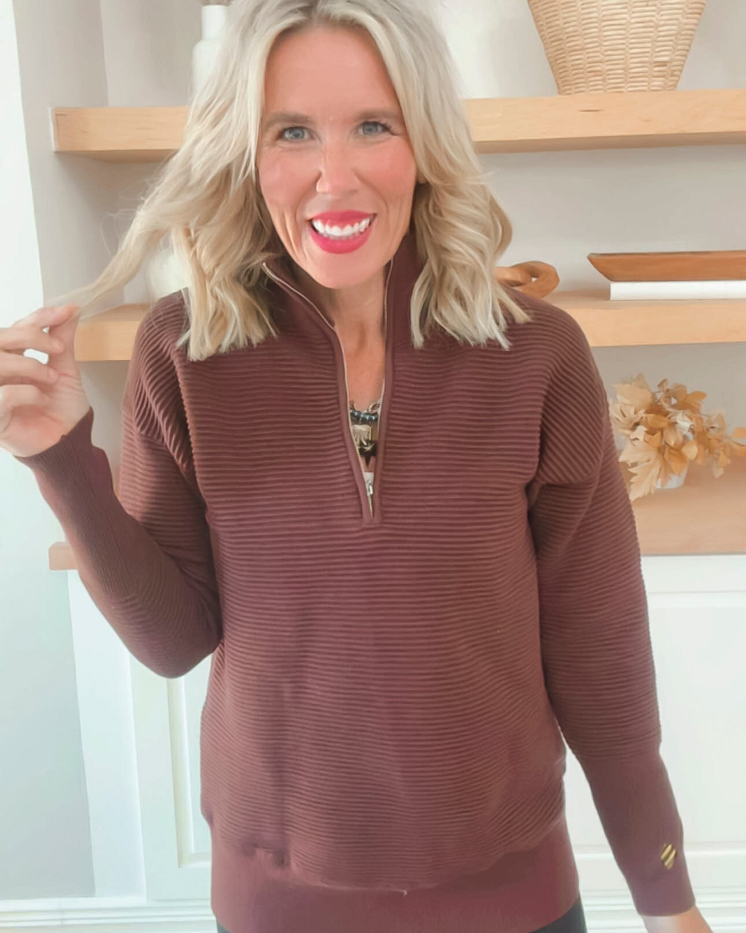On Repeat Brown Half-Zip Pullover | SALTY WAVE