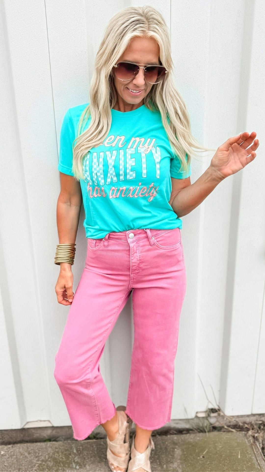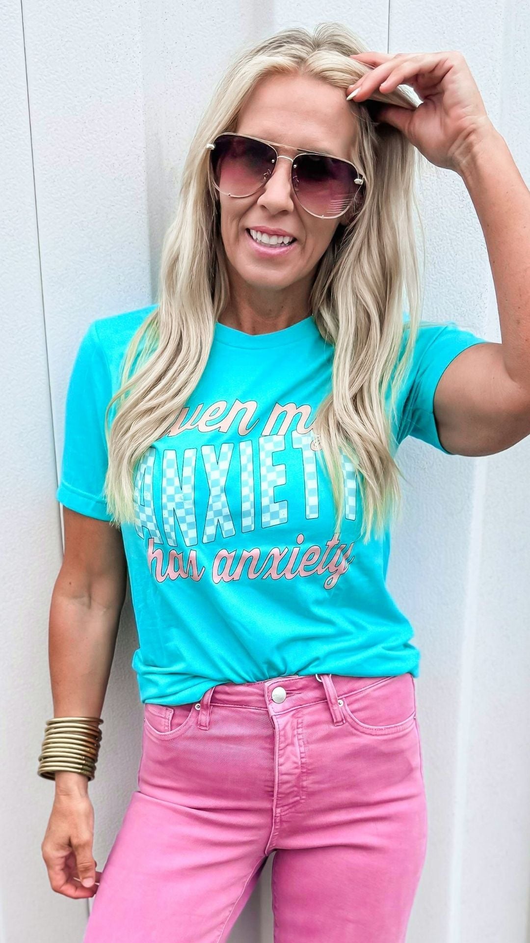 Show off your sense of humor (and your anxiety) with our Even My Anxiety Has Anxiety graphic t-shirt! Made with comfortable fabric for all day wear, this shirt is perfect for those who don't take themselves too seriously. Get one today!