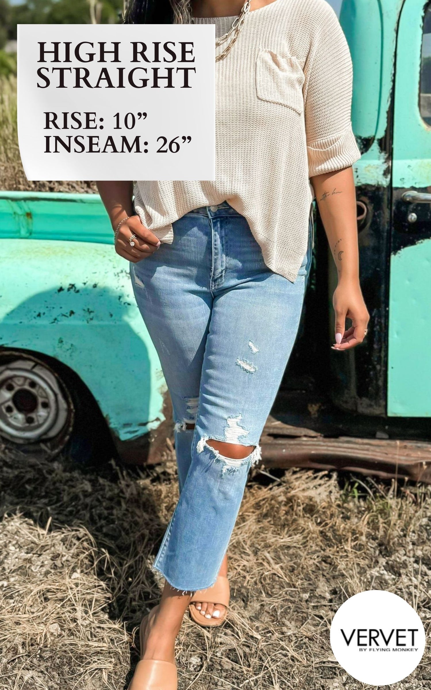 Flying Monkey's Lani High Rise Crop Slim Straight Denim Jeans - Final Sale