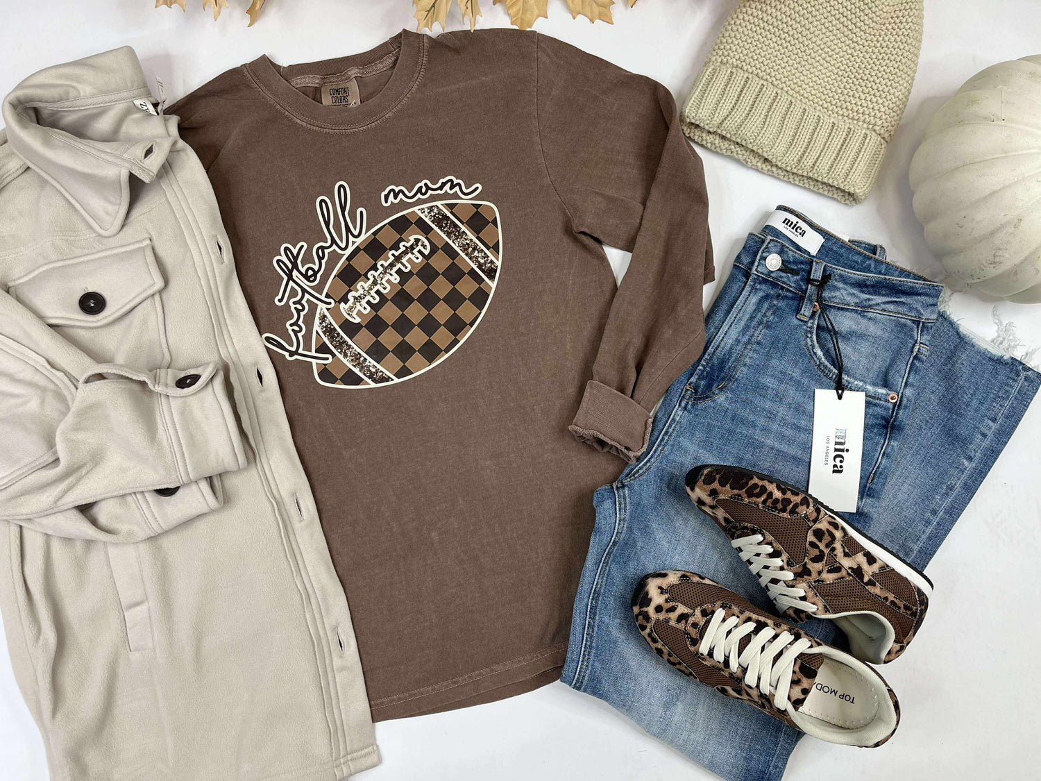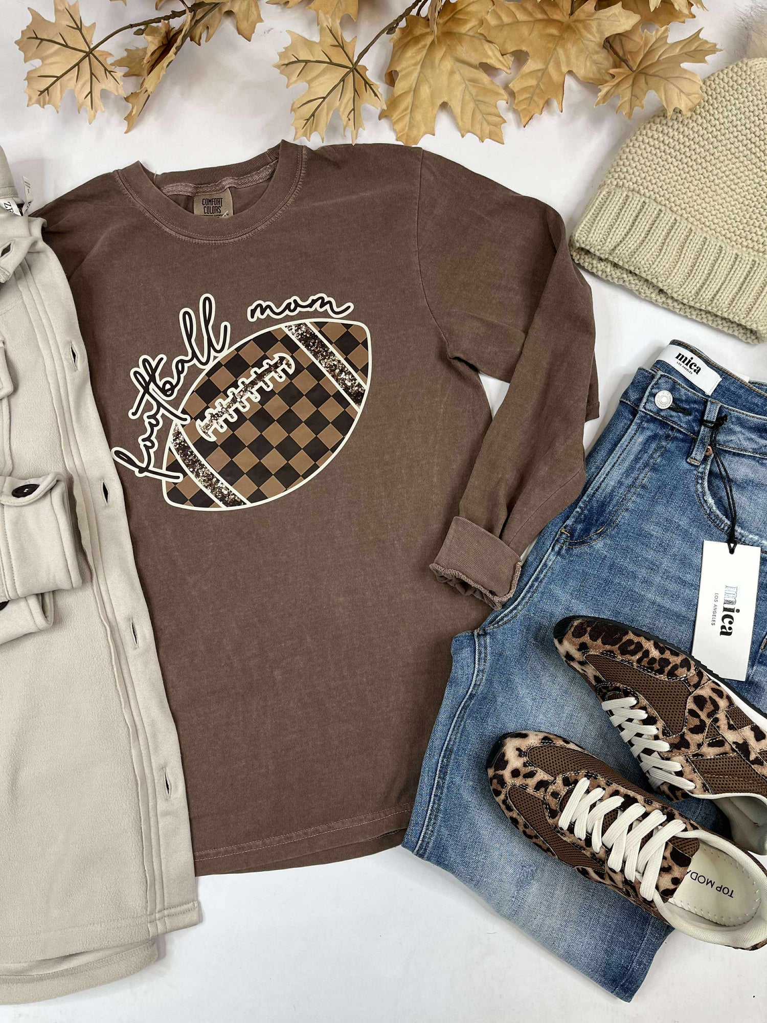 Be the ultimate football mom with our Garment Dyed Long Sleeve Graphic Top! Show off your pride and support for your child's football team in style. This top features a bold graphic design and is made with high-quality, durable materials for long-lasting wear. Perfect for game days or everyday wear. Get yours now!