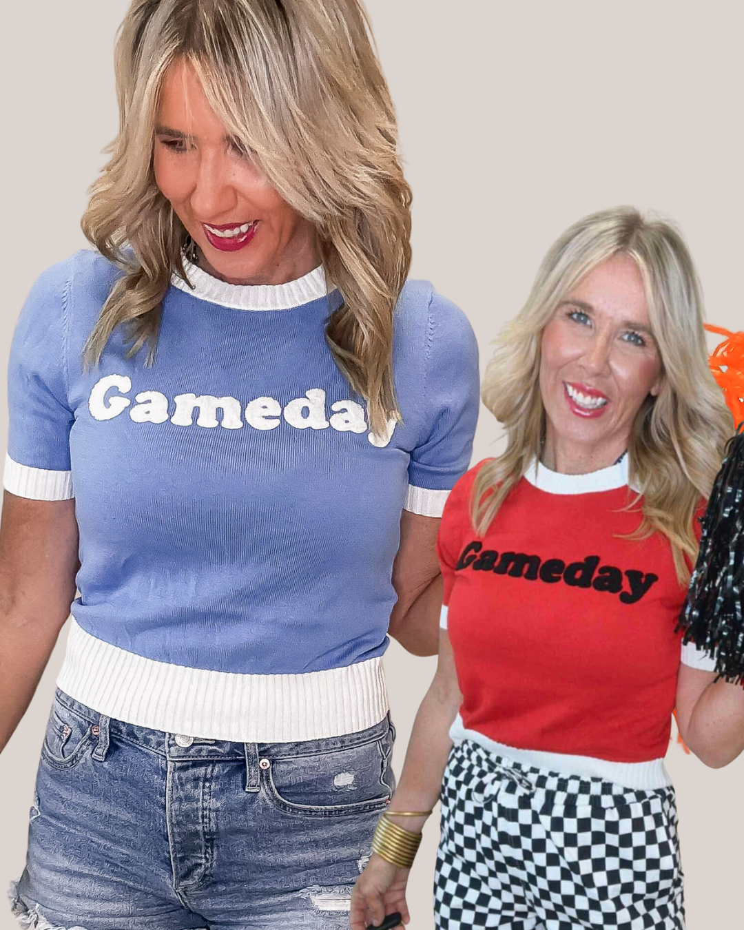 Gameday Short Sleeve Sweater Top (2 COLORS)