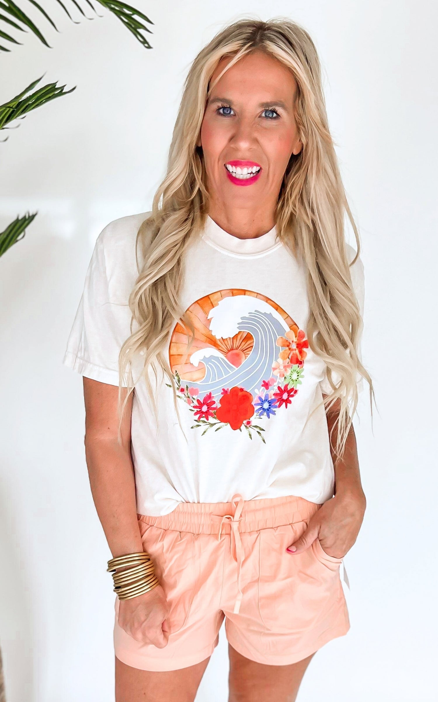 Cream Catching a Wave Garment Dyed Graphic T-shirt*