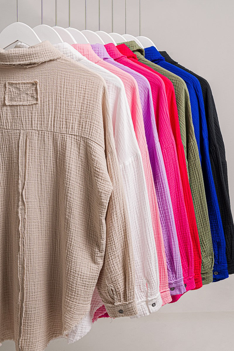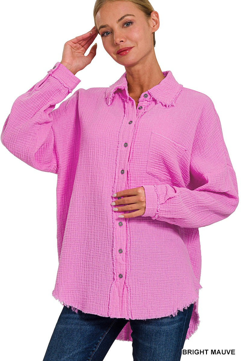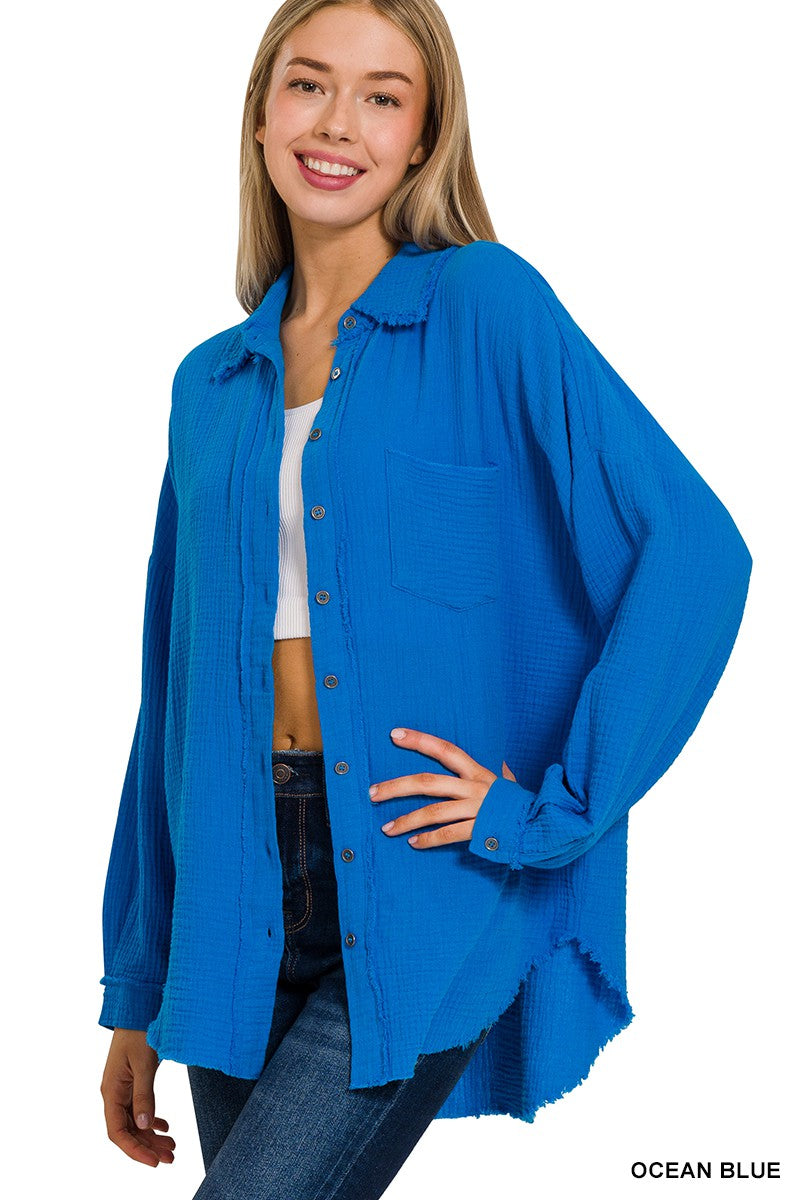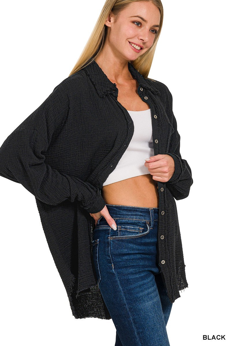 Don't let this raw edge super light gauze top's incredibly flowing "oversized" fall fool you. Whether you're heading to the beach or going out for drinks, it will always be your go-to summer shirt.