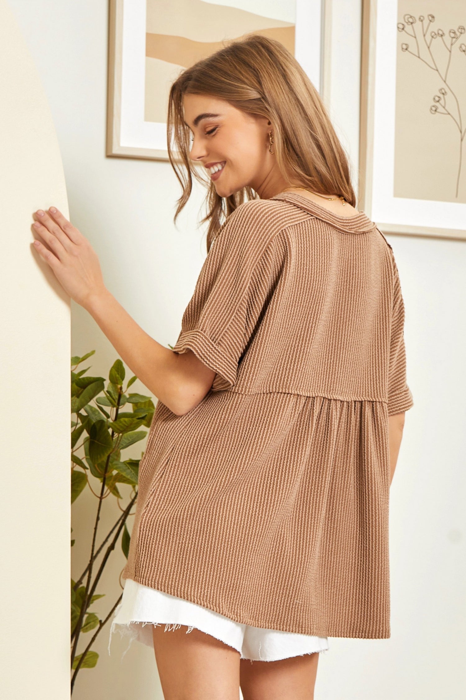 Go with the Flow Curly Rib Short Sleeve Top - Final Sale