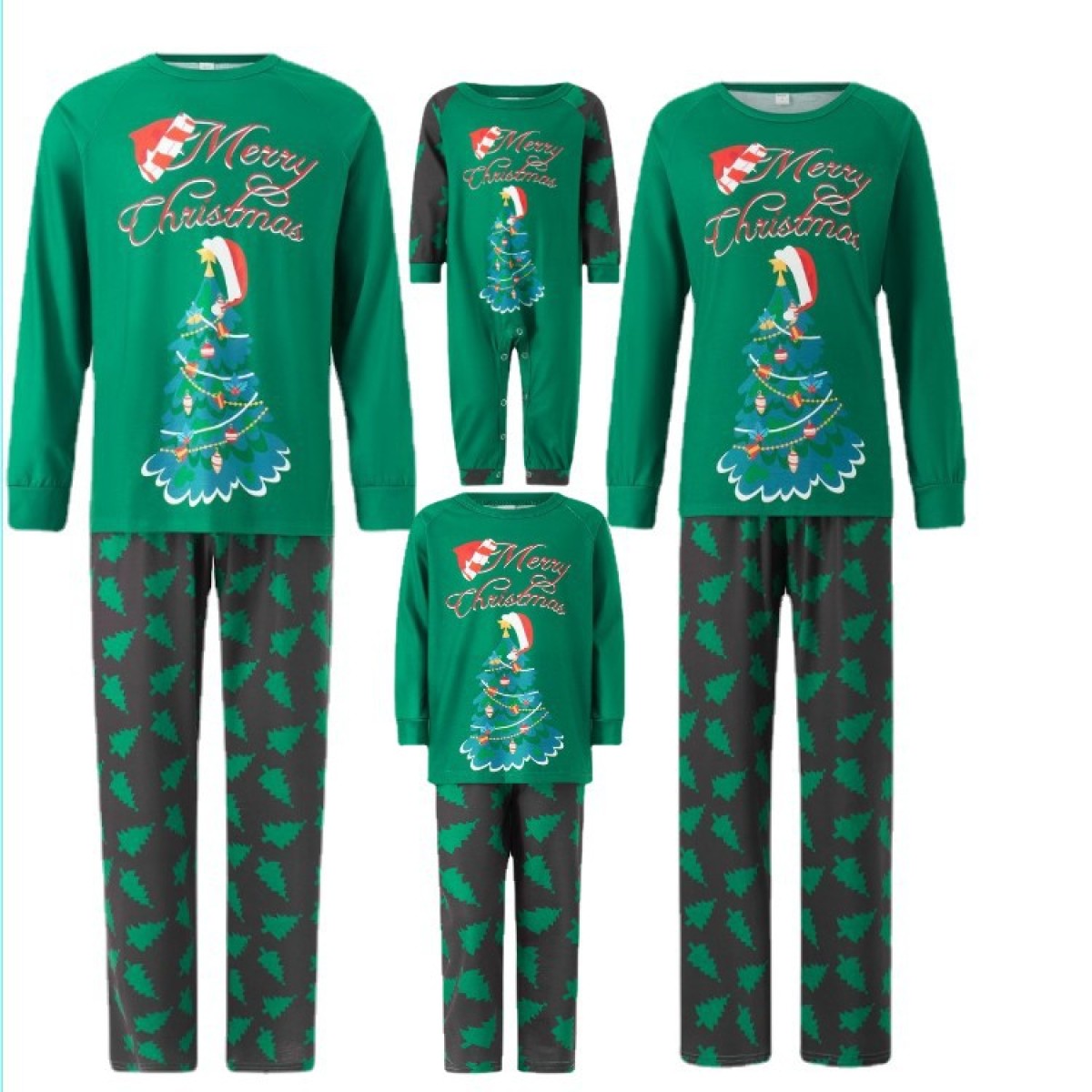 Green Christmas Tree Family Pajama Matching Set