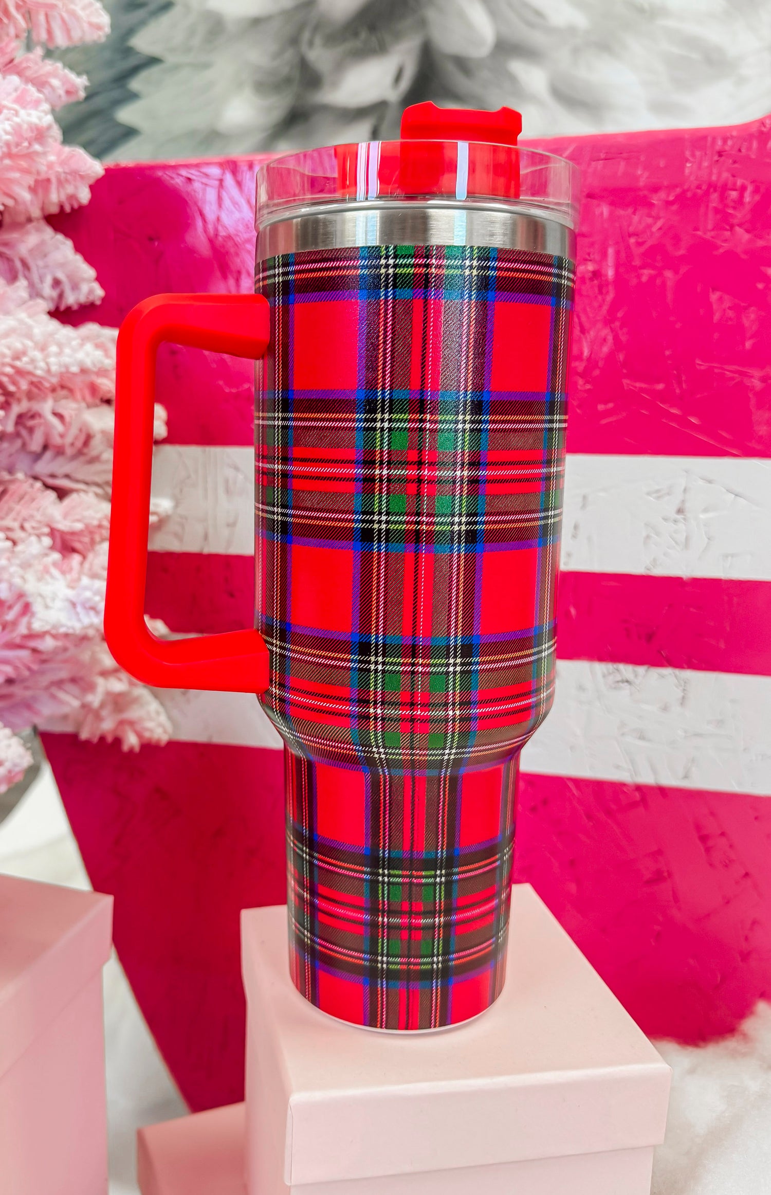Introducing our Red Tartan Plaid Tumbler, perfect for keeping your favorite drinks hot or cold for hours! This 40oz tumbler features a classic red tartan plaid design that is both stylish and functional. Stay refreshed and stylish with every sip! This thing is heavy duty. If your a stanley fan, you gotta try out this tumbler, you're gonna love it!