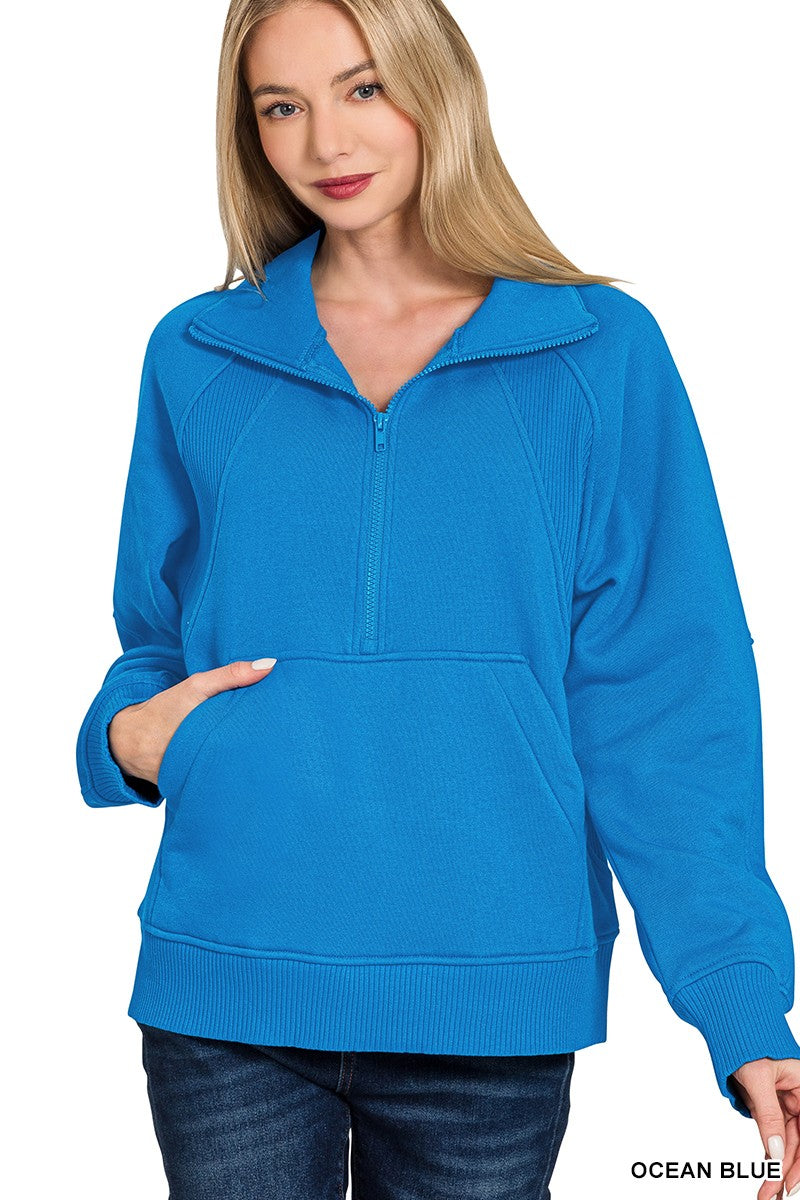 The Jessie Half Zip Fleece Pullover w/ Kangaroo Pocket | ZENANA (5 COLORS) - Final Sale