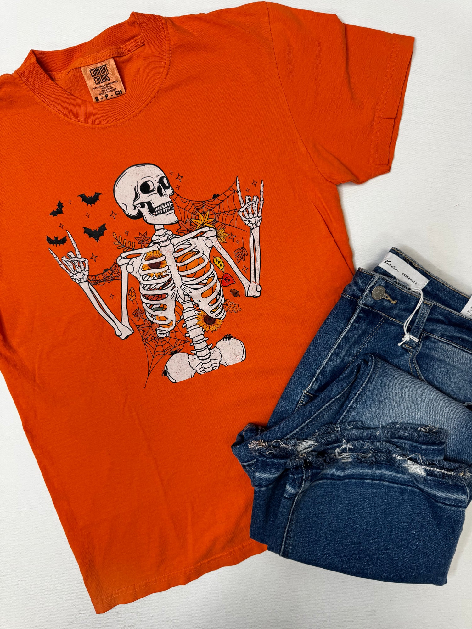 Halloween Skeleten Orange Garment Graphic T-shirt - Final Sale
