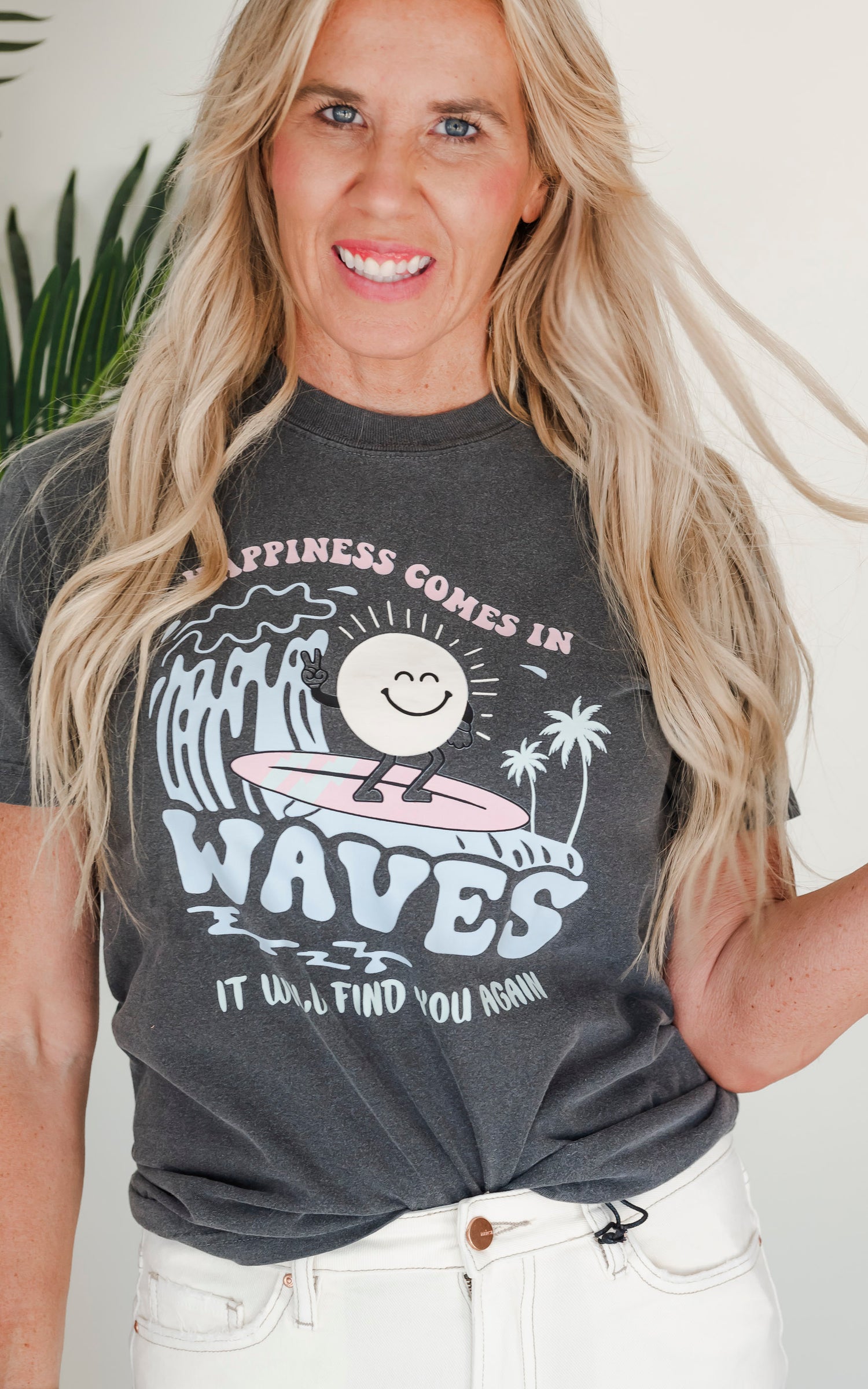Happiness Comes in Waves Garment Dyed Graphic T-shirt.