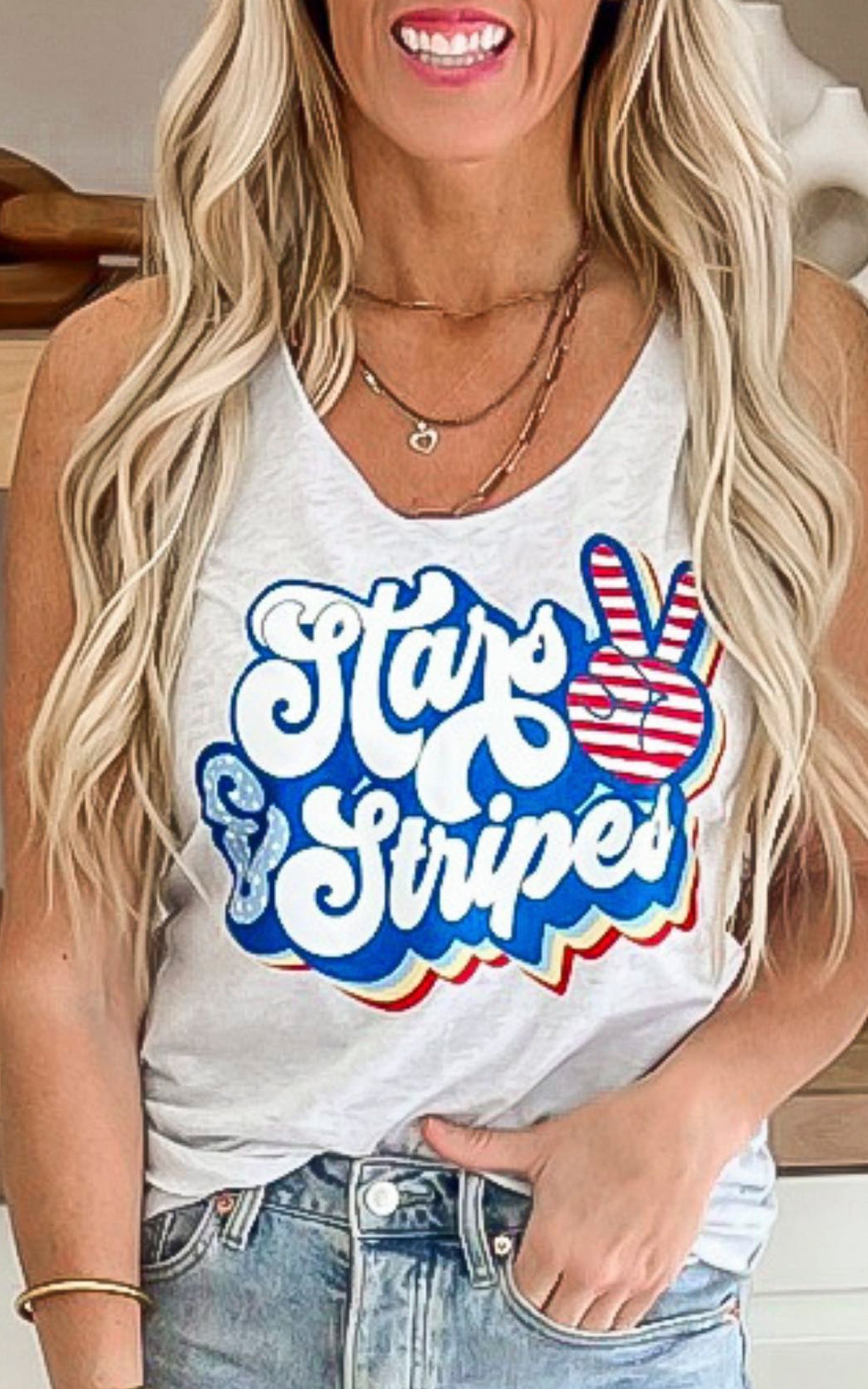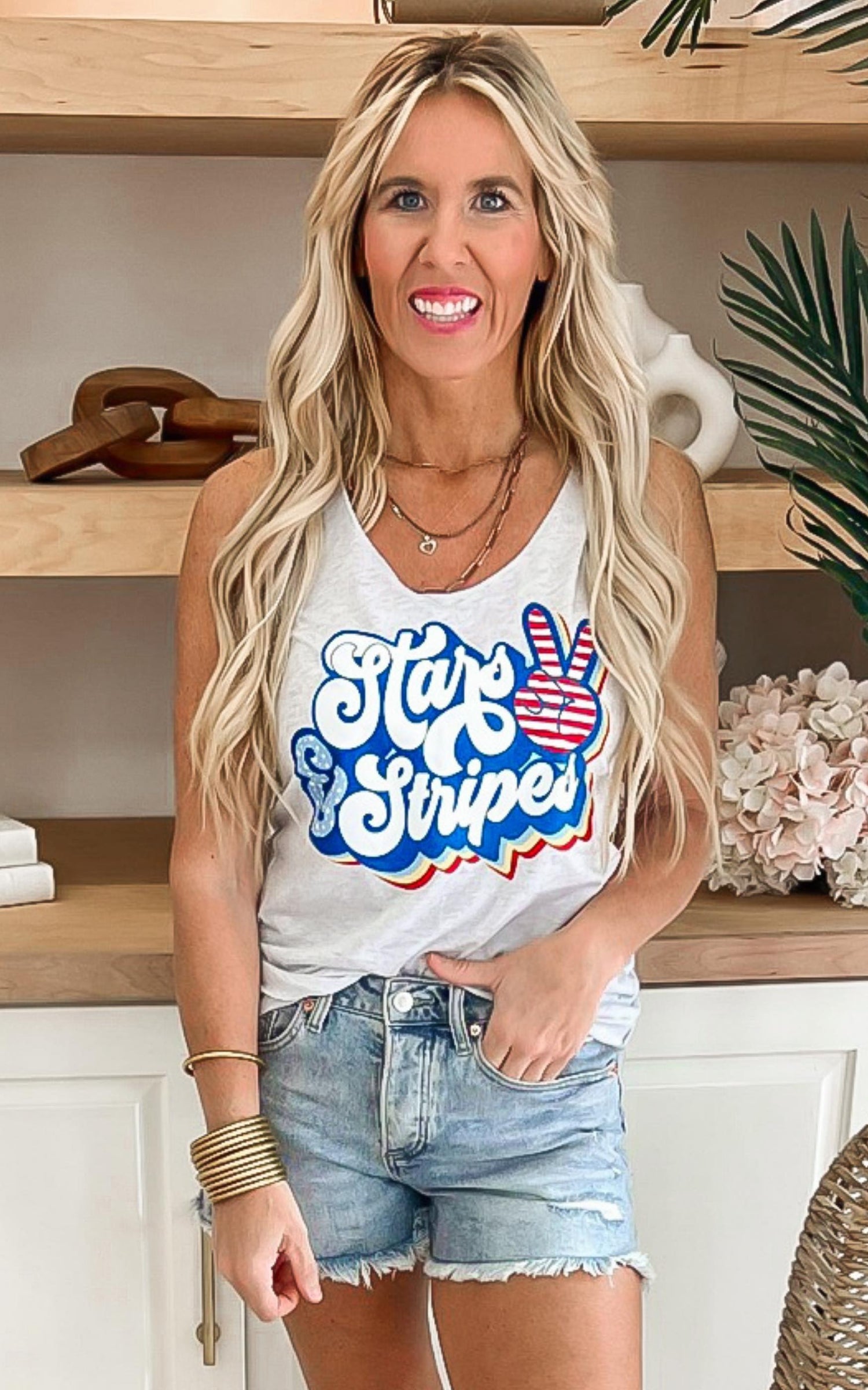 Heather Grey STARS & STRIPES Racerback Tank Top - Final Sale