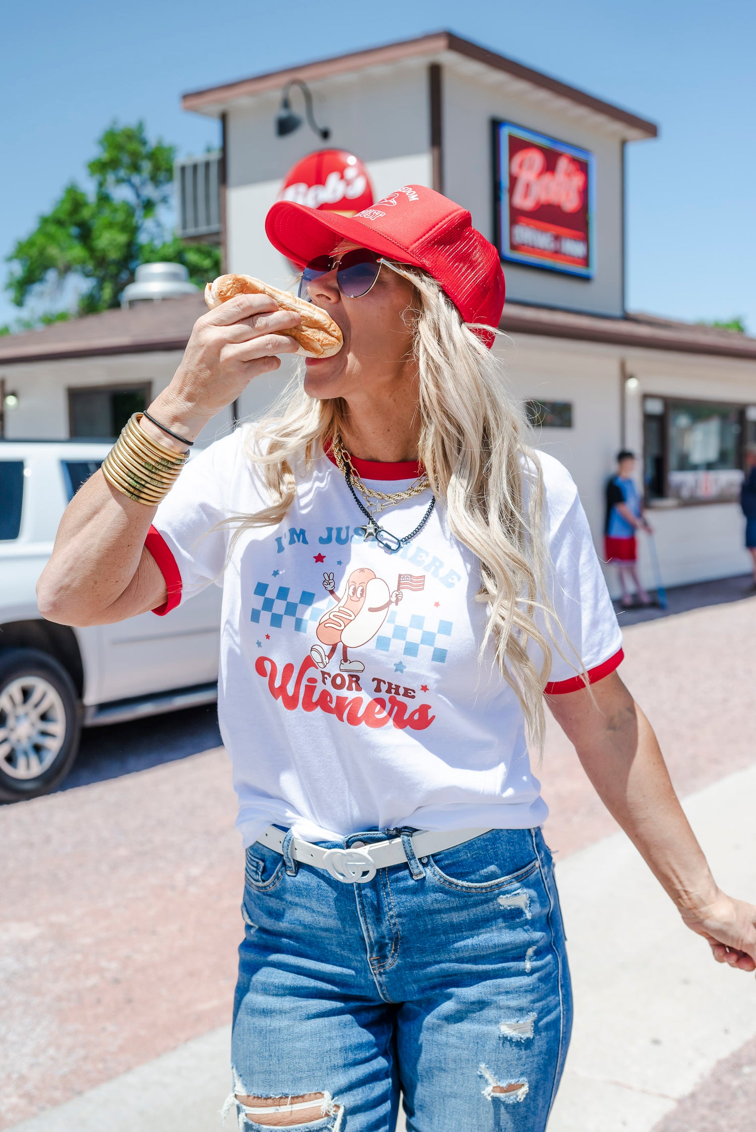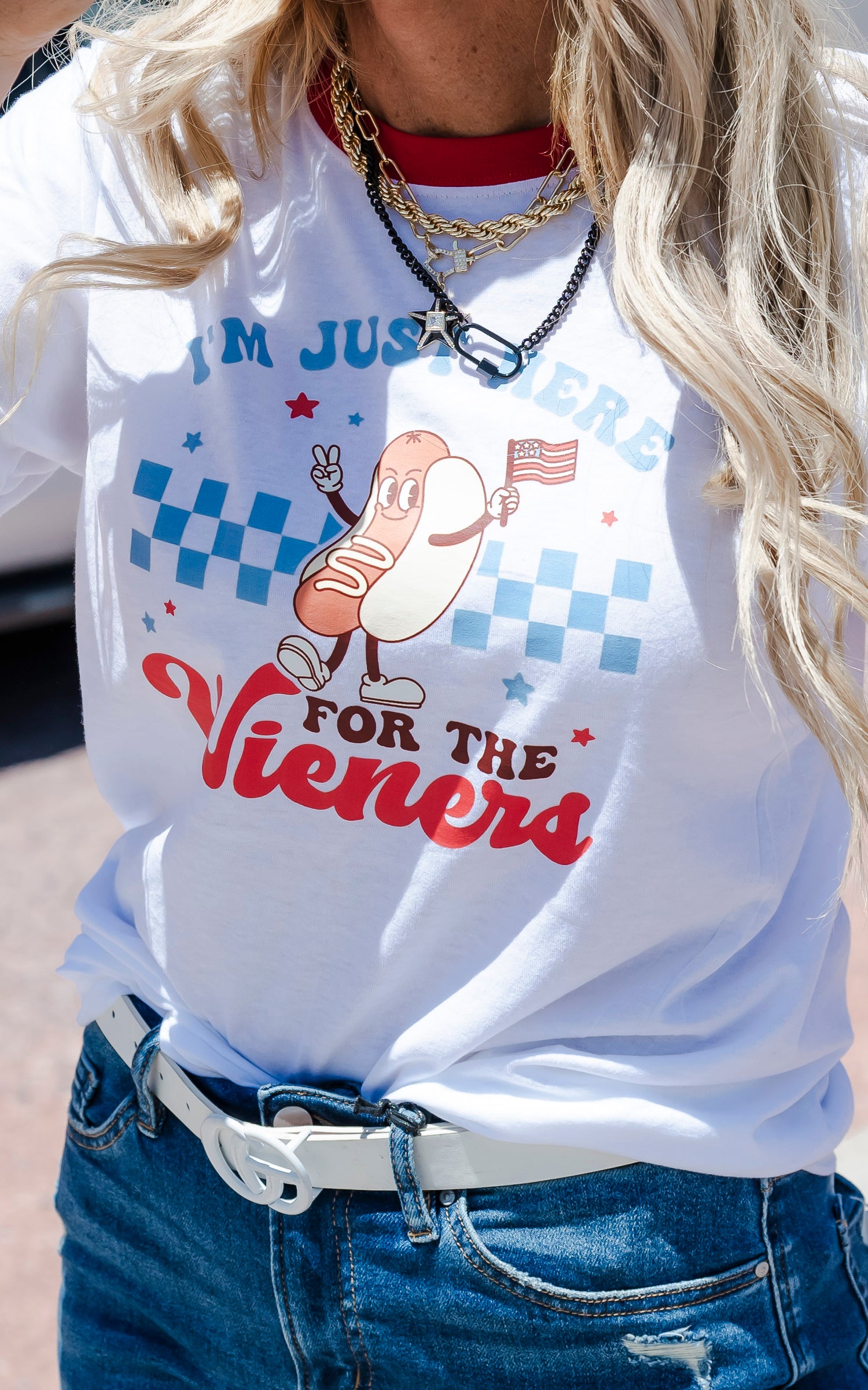 Here for the Weiner Snarky Ringer Graphic T-shirt