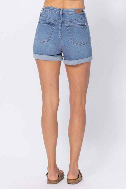 Hi Rise Open Seam Cuffed Denim Shorts - Judy Blue Final Sale