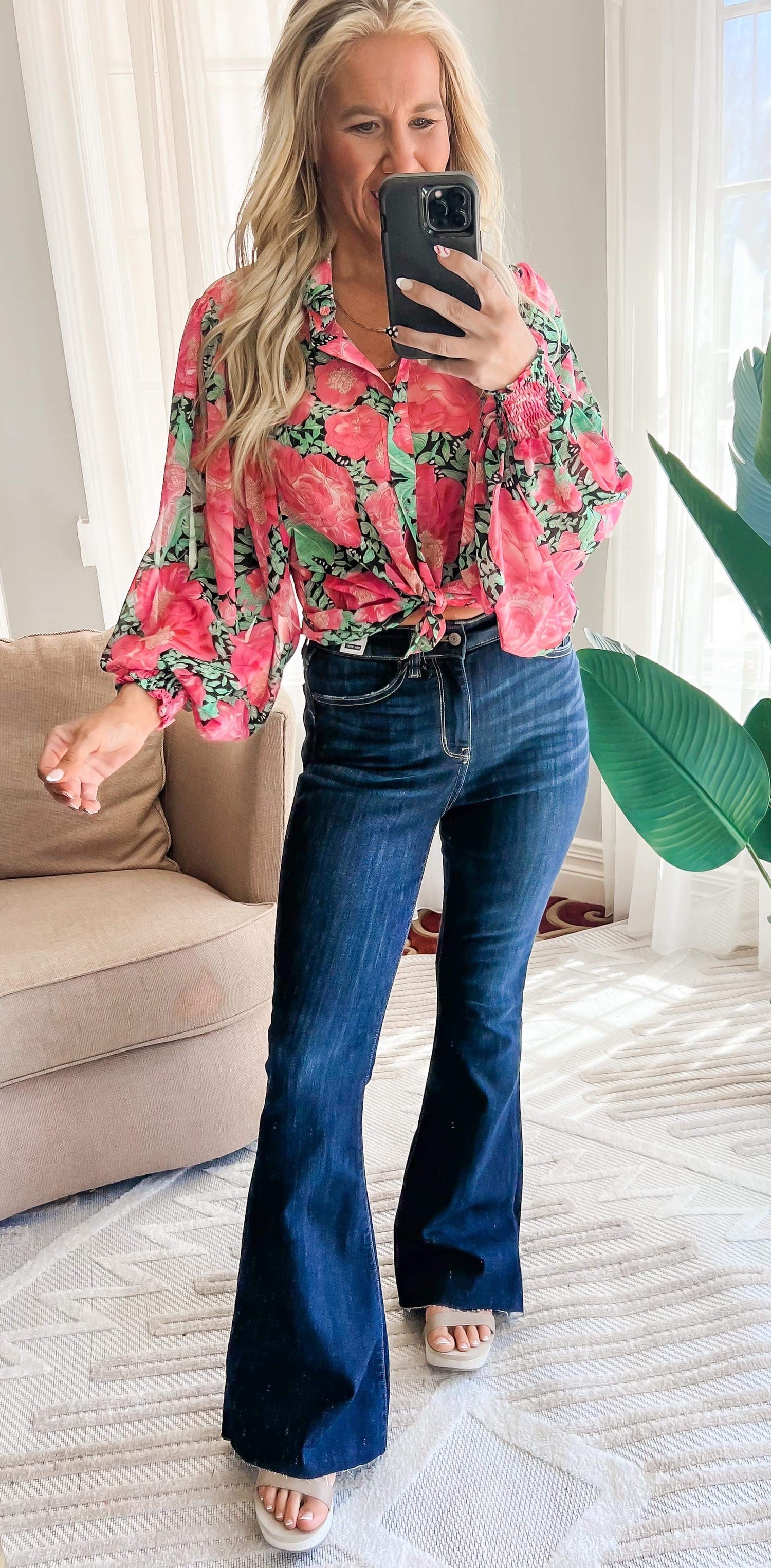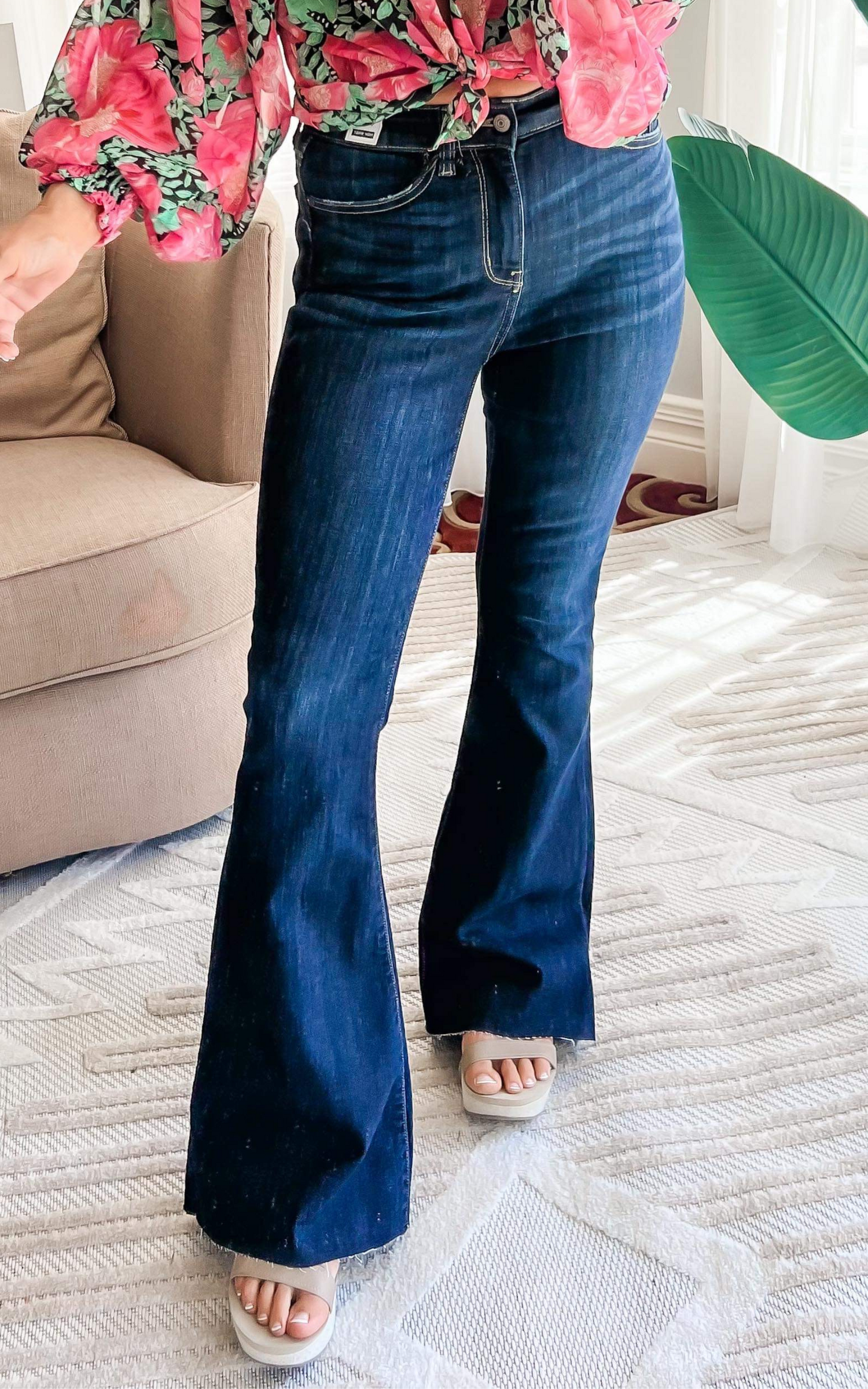 SARA FITS Stick with your true denim size. Sara is 5’7” and a size 5(27) in denim. She is able to size down in these and she is wearing a size 26. If your new to odd sizes, take your even and subtract it by one. If you straddle 2 even sizes, take the middle size (ex: btw 4/6 - get the size 5) Be sure to watch the full FIT VID in the App (SHOP BAD HABIT) to see how it fits and feels.