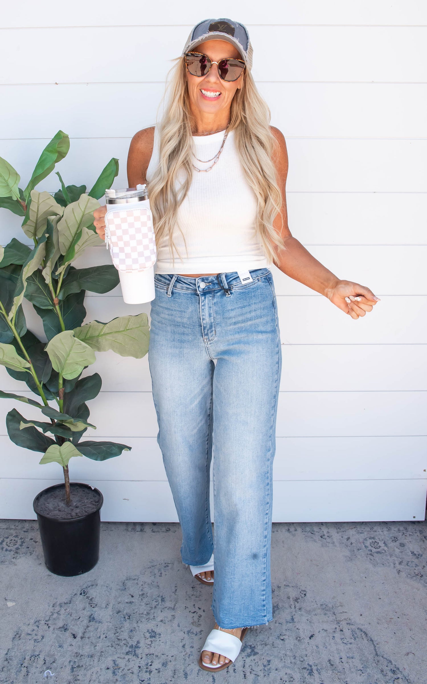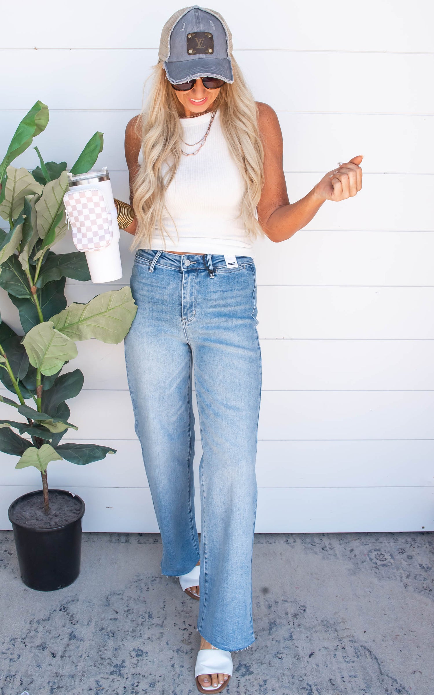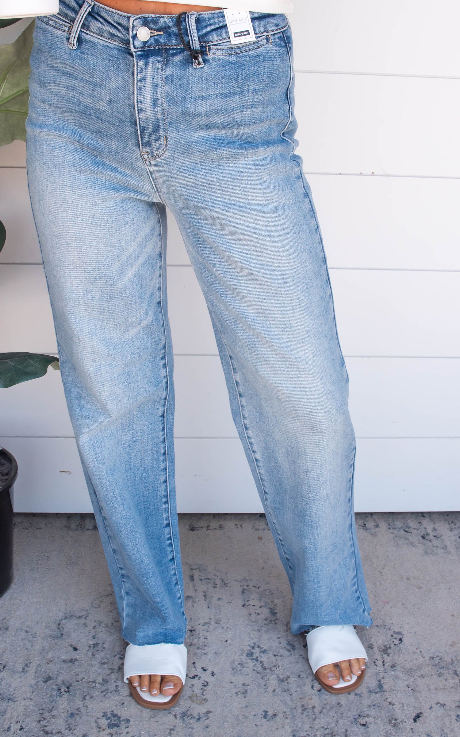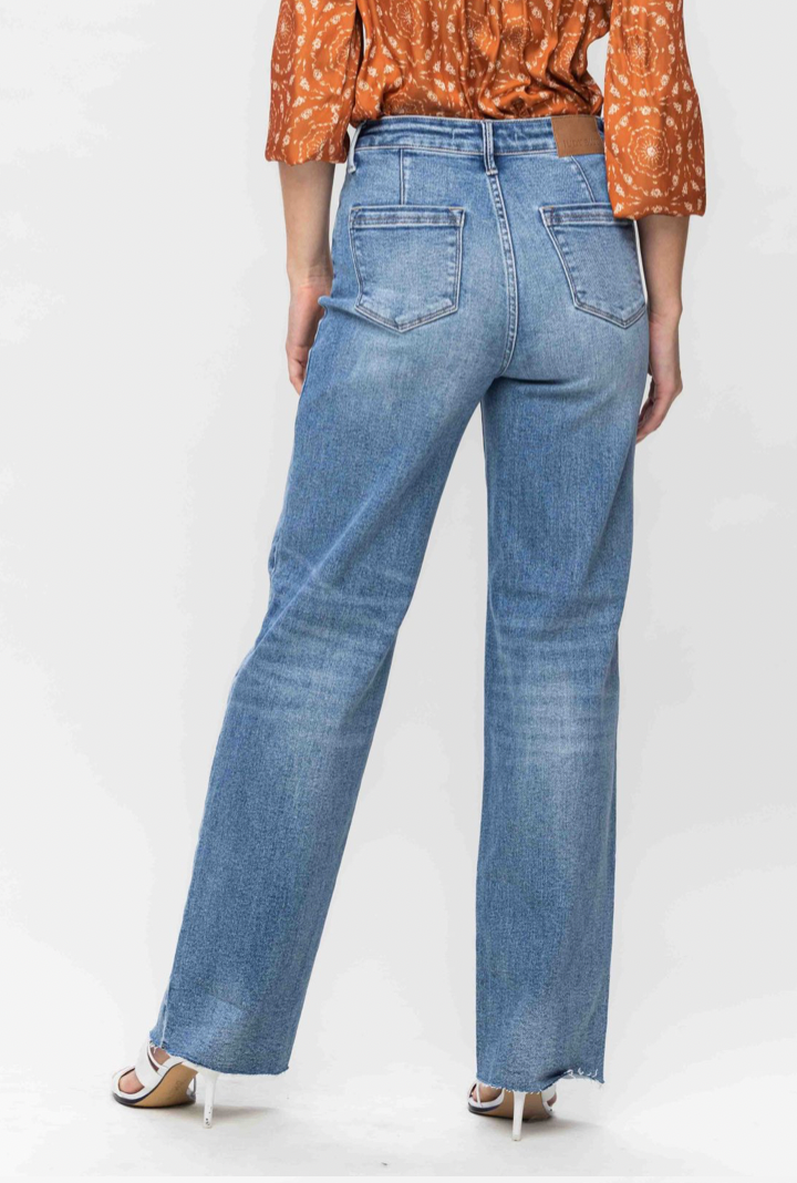 High Rise Raw Hem Trouser Wide Leg Denim Jean | Judy Blue - Final Sale